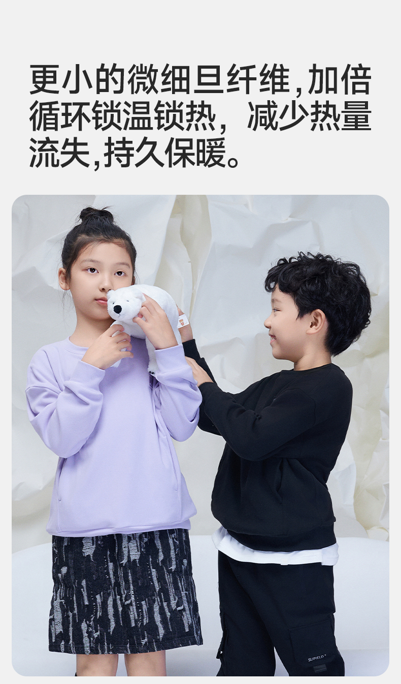 Supield素湃儿童卫衣温倍暖速热男童女童打底上衣吸湿排汗5A抗菌