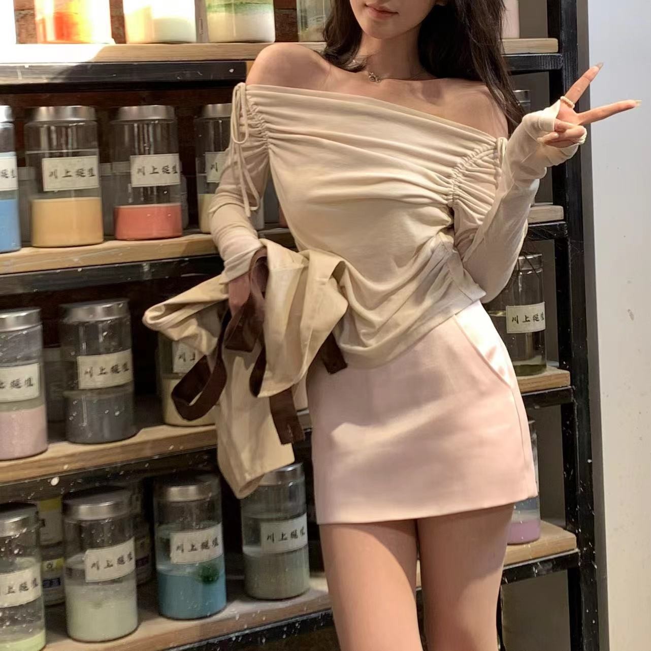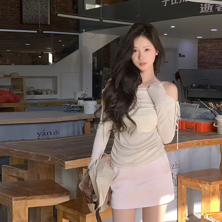 现货 夏季芭蕾风 一字肩打底衫