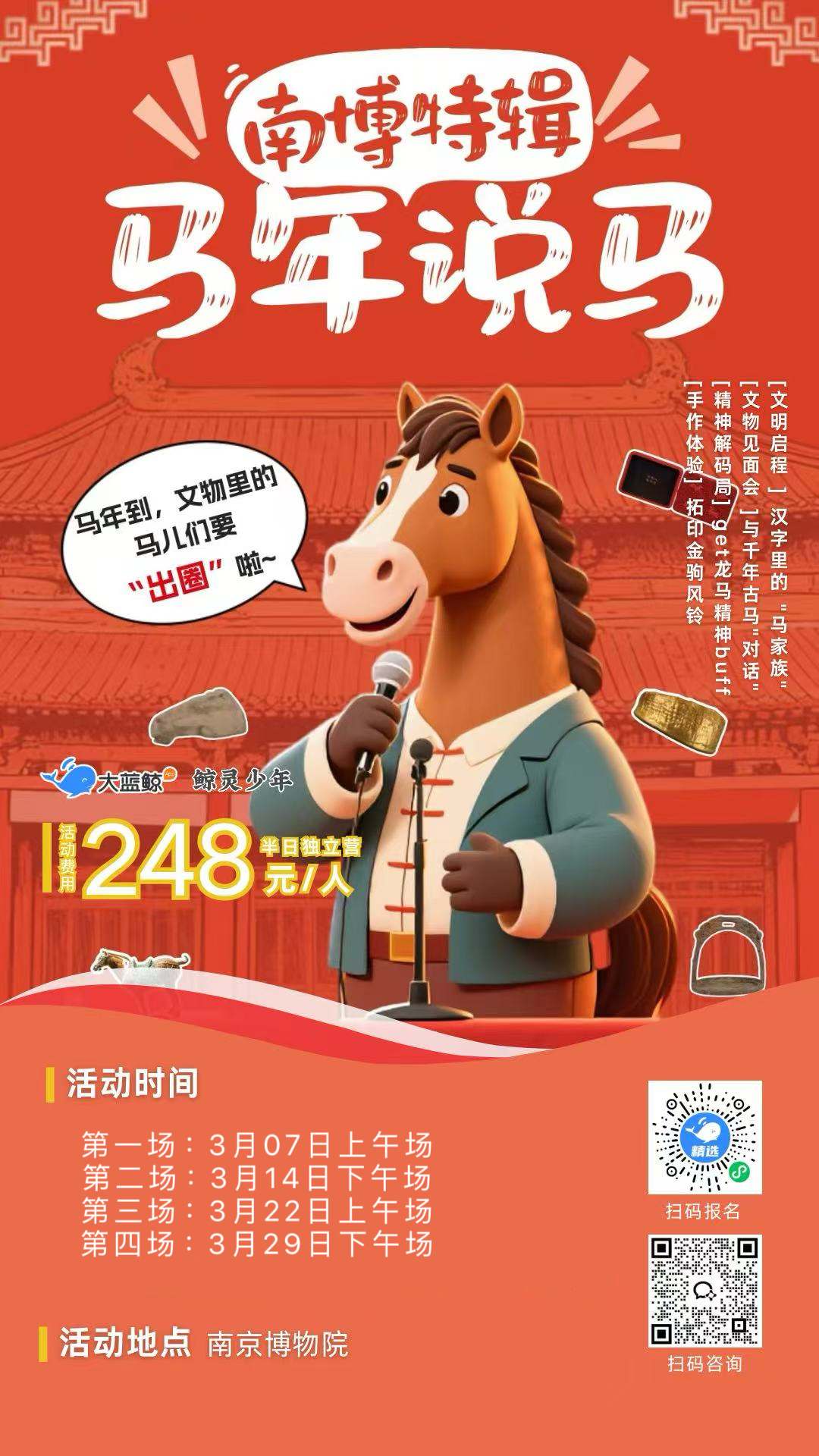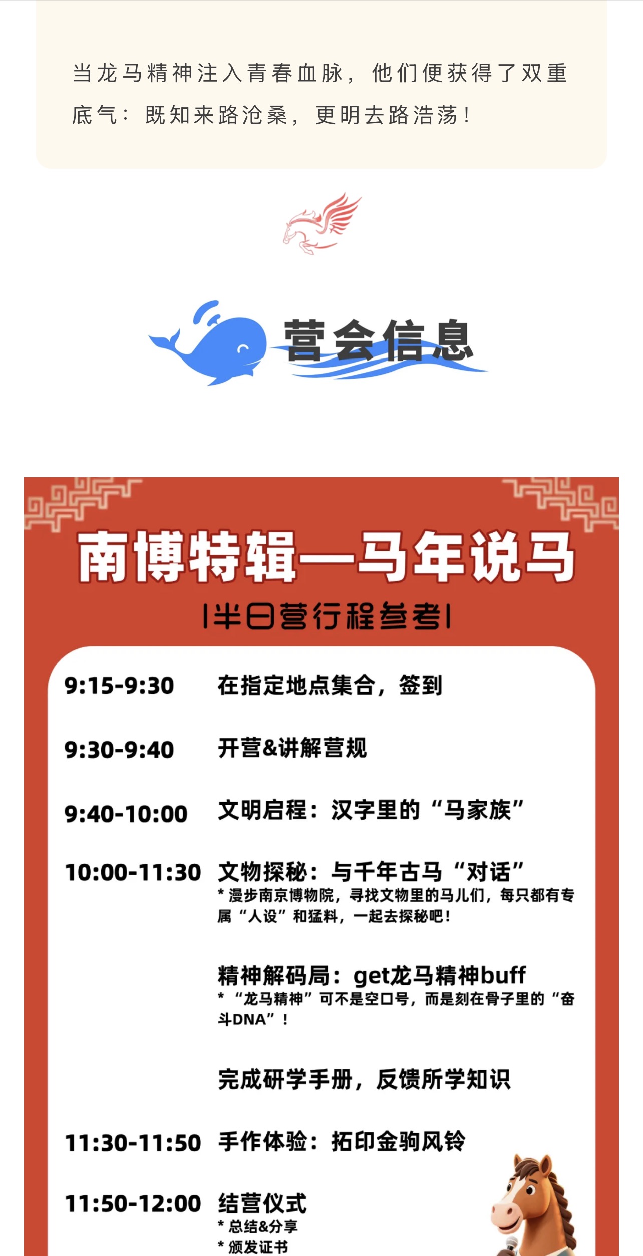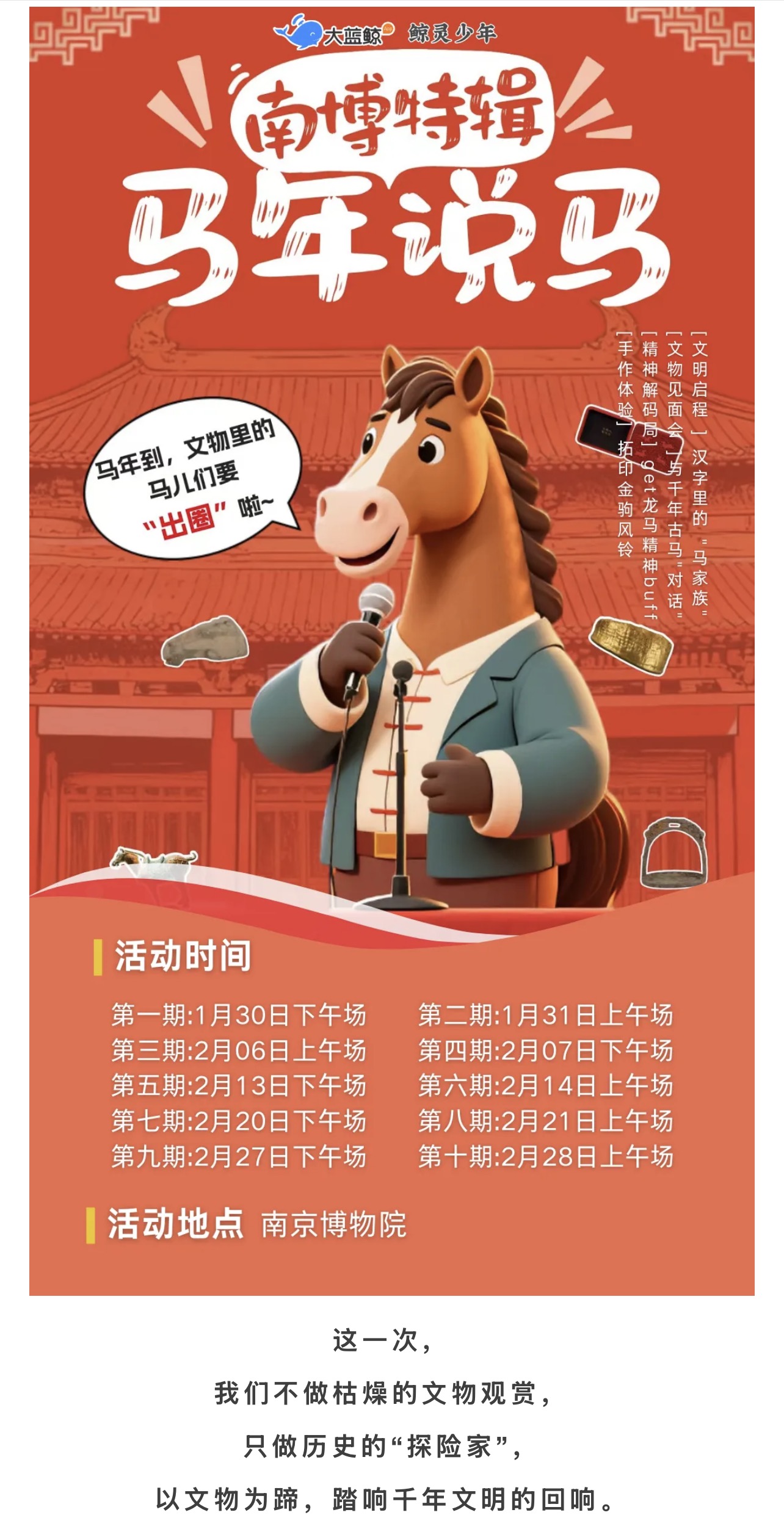 大蓝鲸爱研学|【独立半日营】南博马年说马|千年古马天团集体“C位出道”,以文物为蹄,踏千年回响,解锁镌刻在中华民族精神深处的活性基因!
