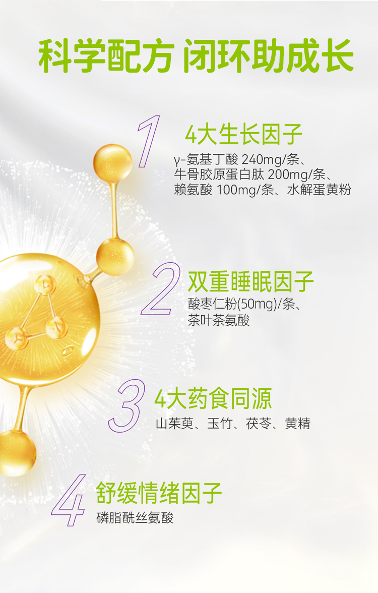 适用于3岁以上想要长高、生长速度慢的、因各种因素导致睡眠质量不好、吸收差、脾胃弱、体质差 、学习压力大的孩子。