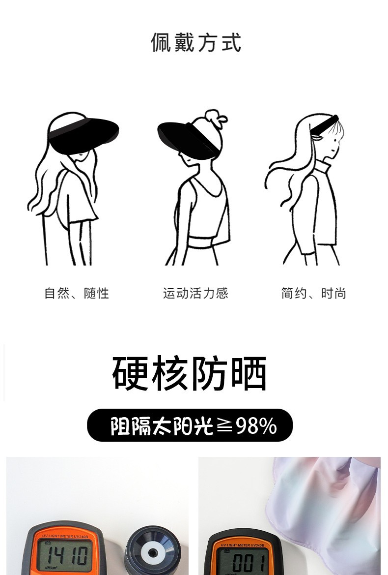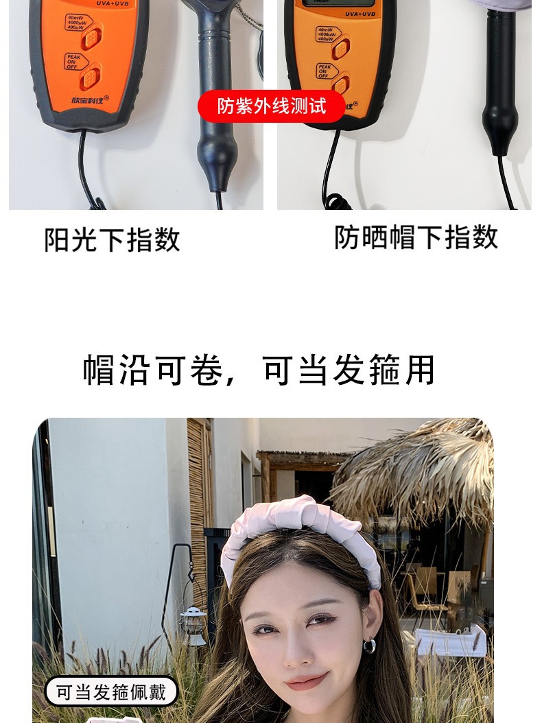 【一帽两用,进口黑胶防晒】夏季时尚防晒帽,发箍空顶帽轻盈透气,佩戴自然方便,自带弧度的帽檐既遮阳又显脸小,女户外遮脸潮大檐休闲空顶帽子,遮阳防紫外线贝壳帽