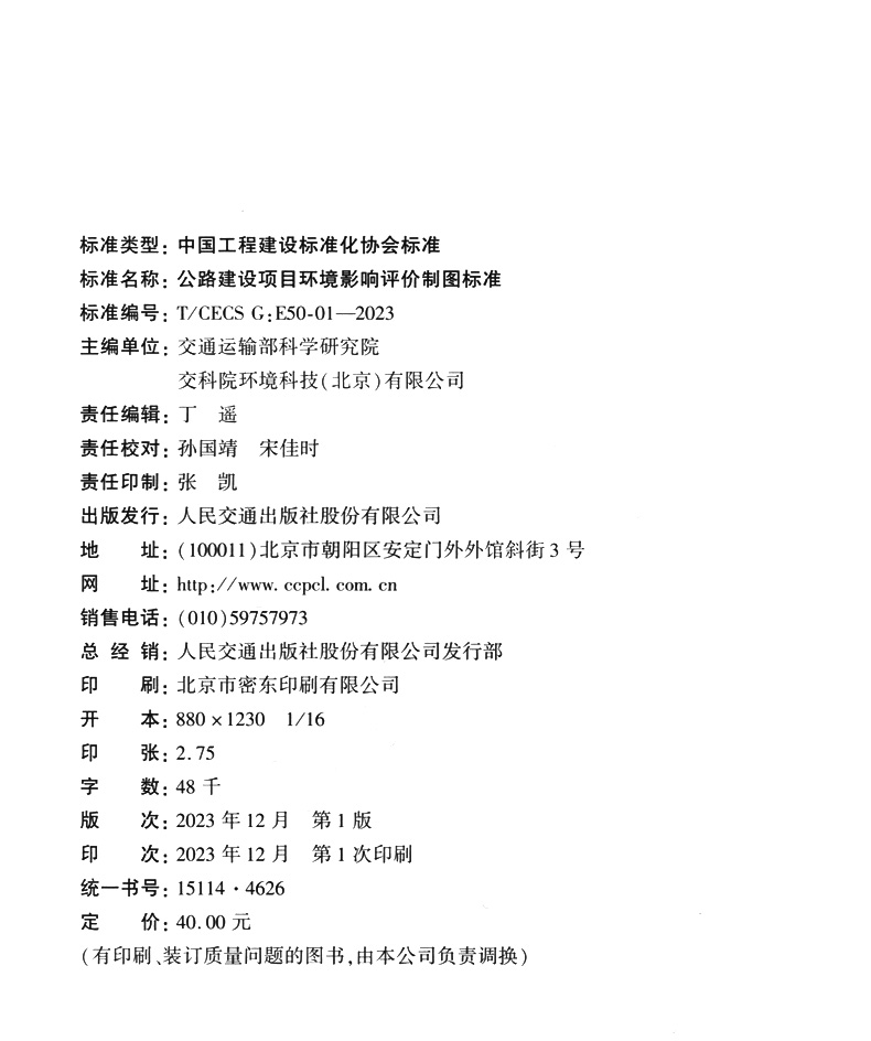 书名:公路建设项目环境影响评价制图标准(T/CECS G:E50-01—2023)