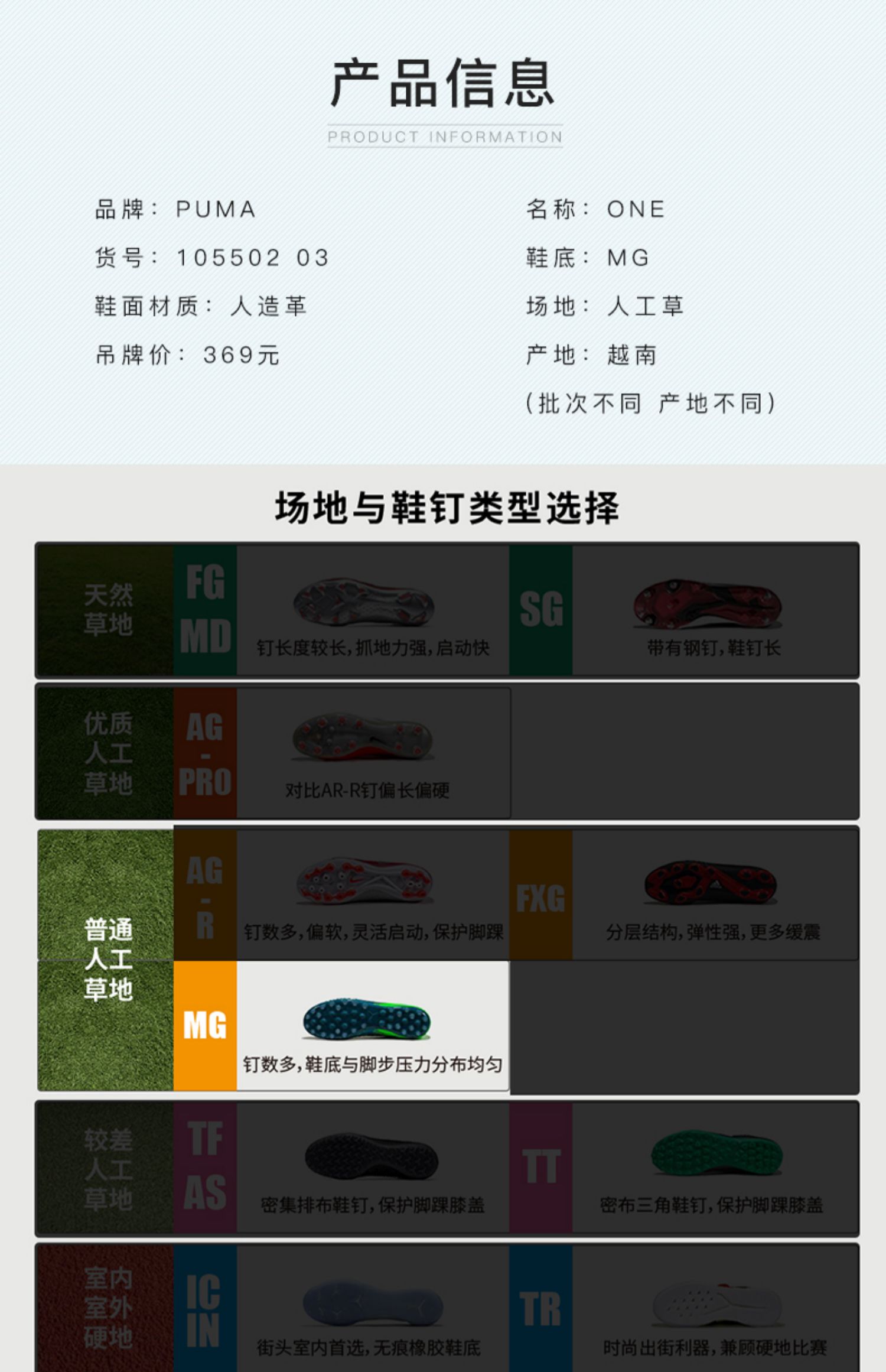 小李子:专柜正品PUMA彪马ONE 19.4 MG短钉儿童足球鞋男105502-03