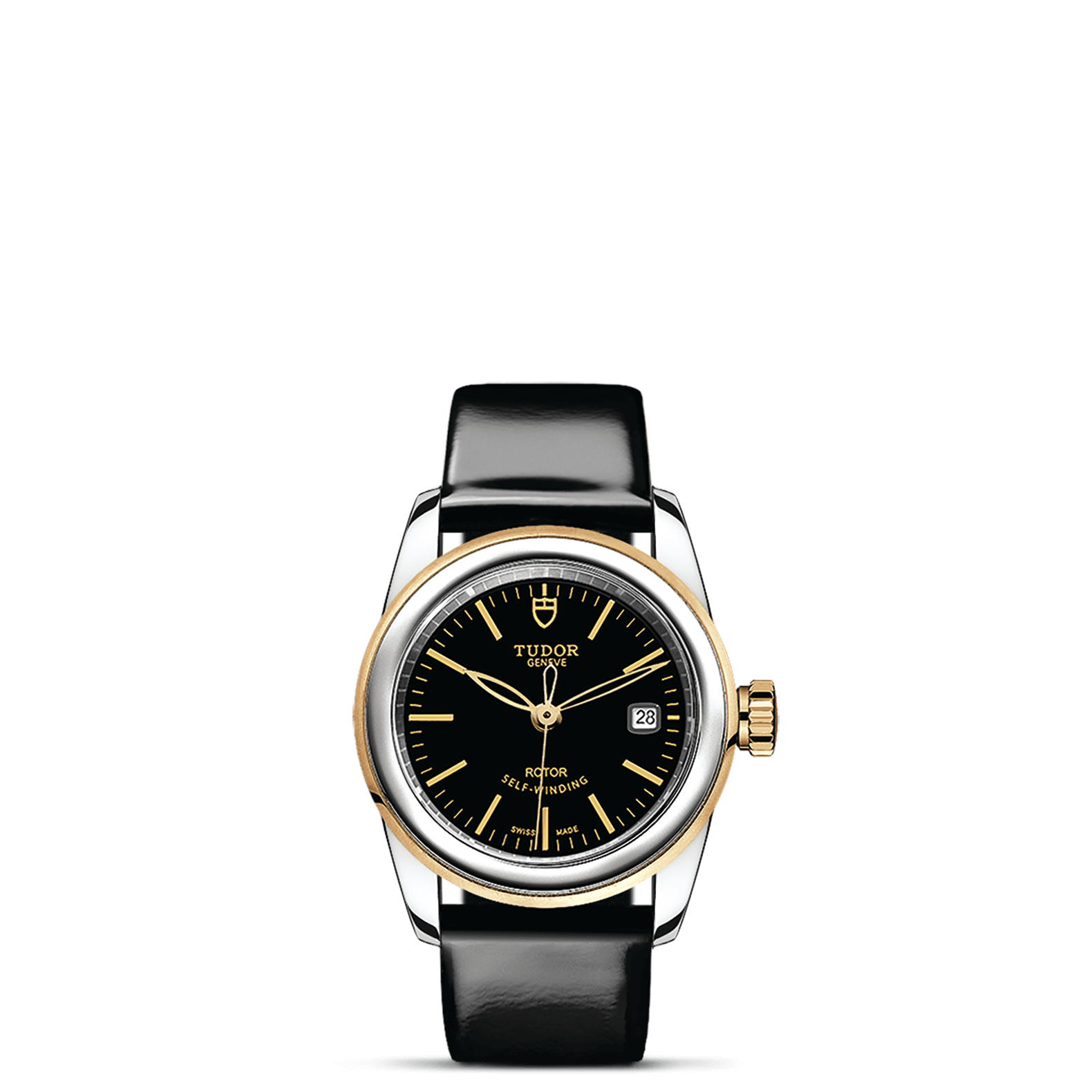 旋入式上链錶冠,饰以帝舵表标志;精钢覆有0.1毫米18K黄金薄层