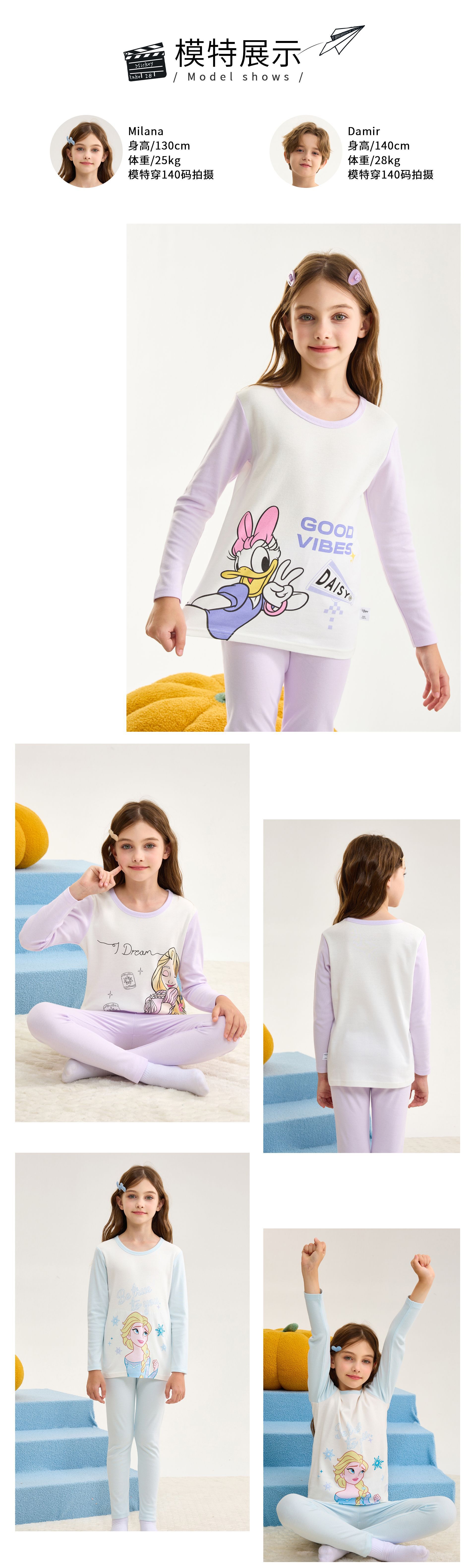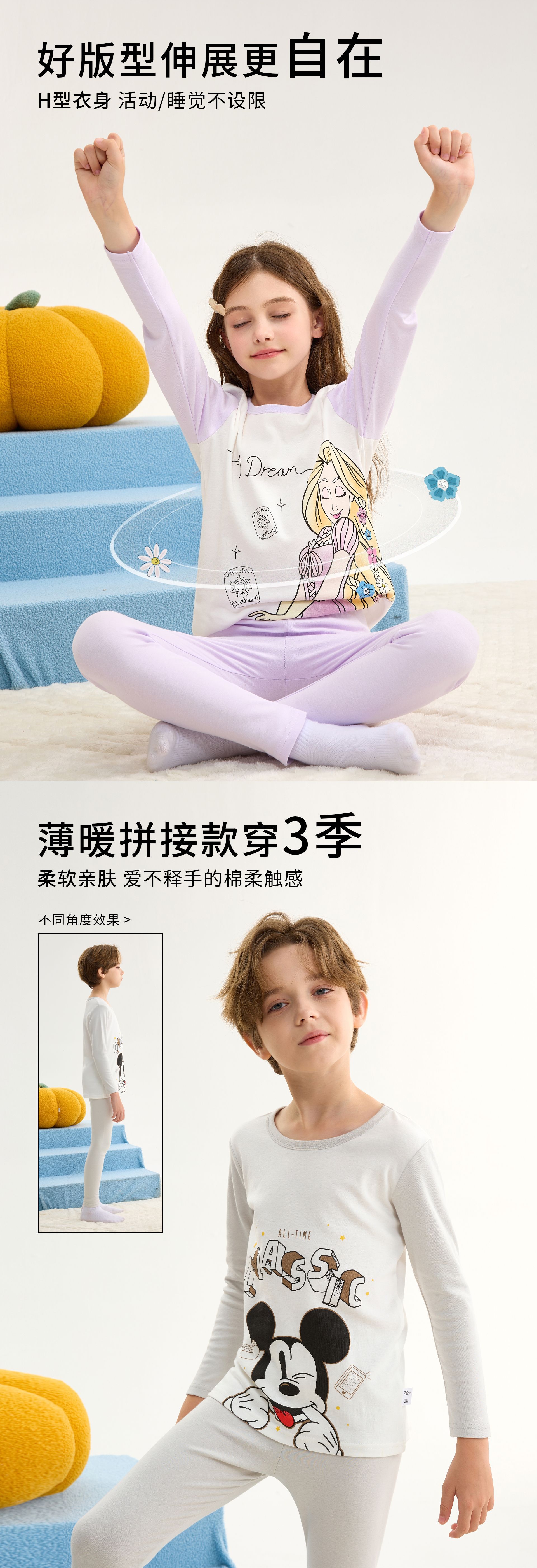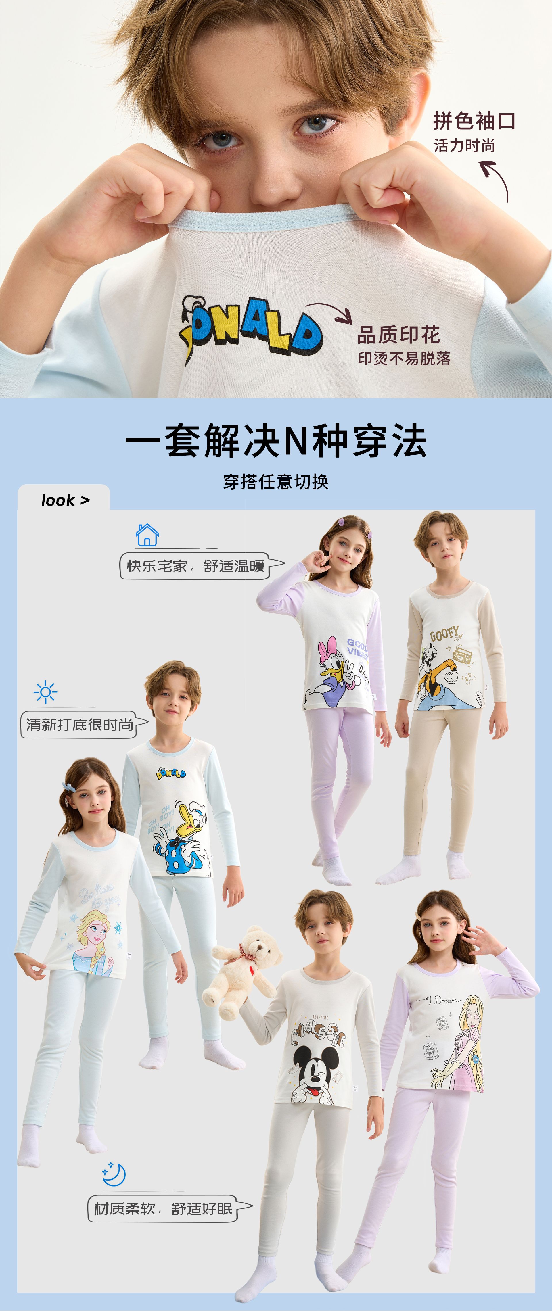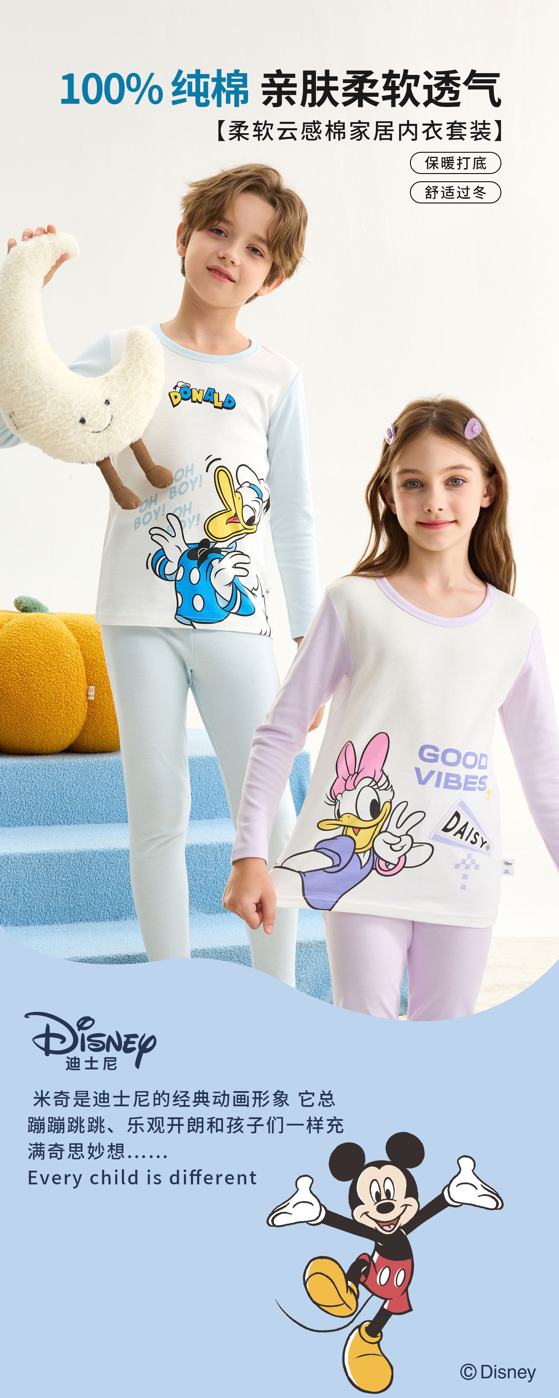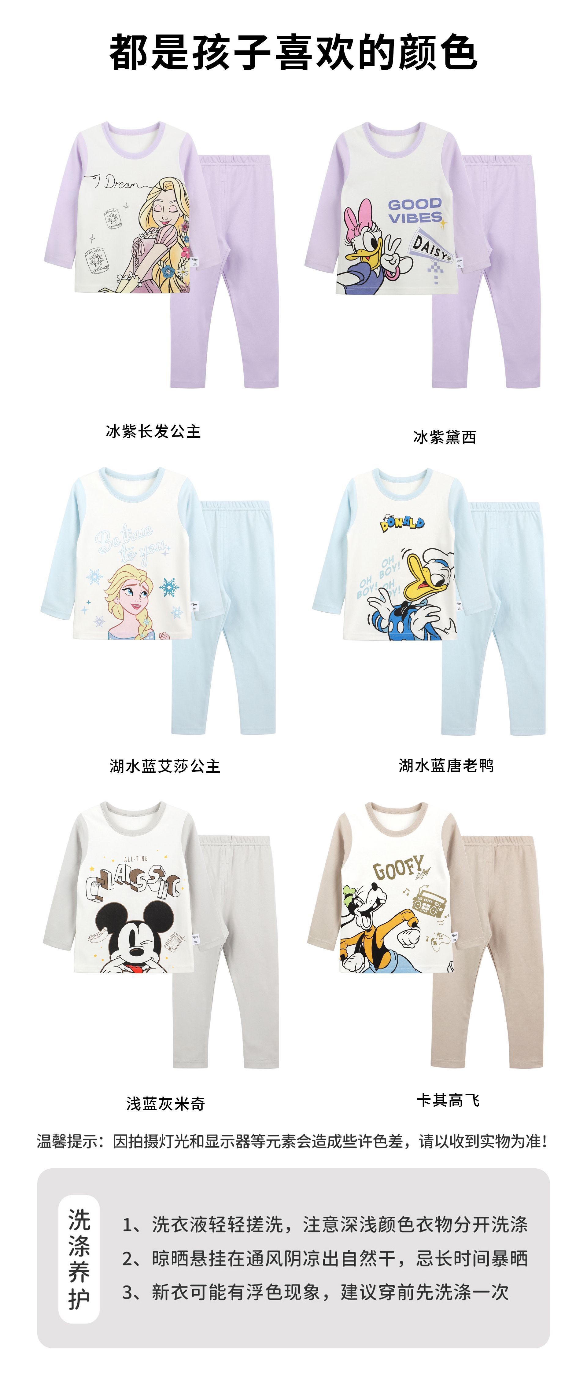 迪士尼儿童内衣套装纯棉男童全棉家居服女童秋衣秋裤 一件代发