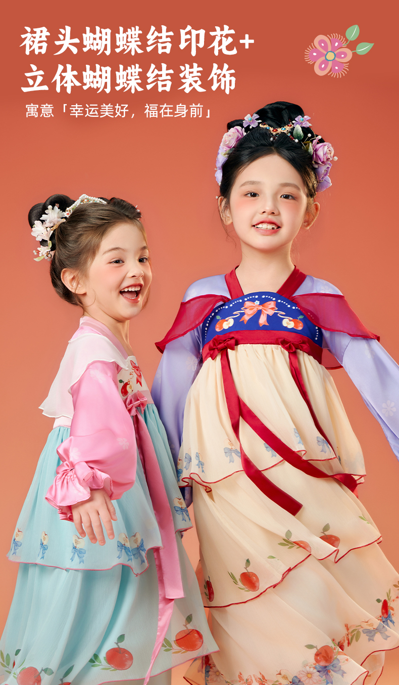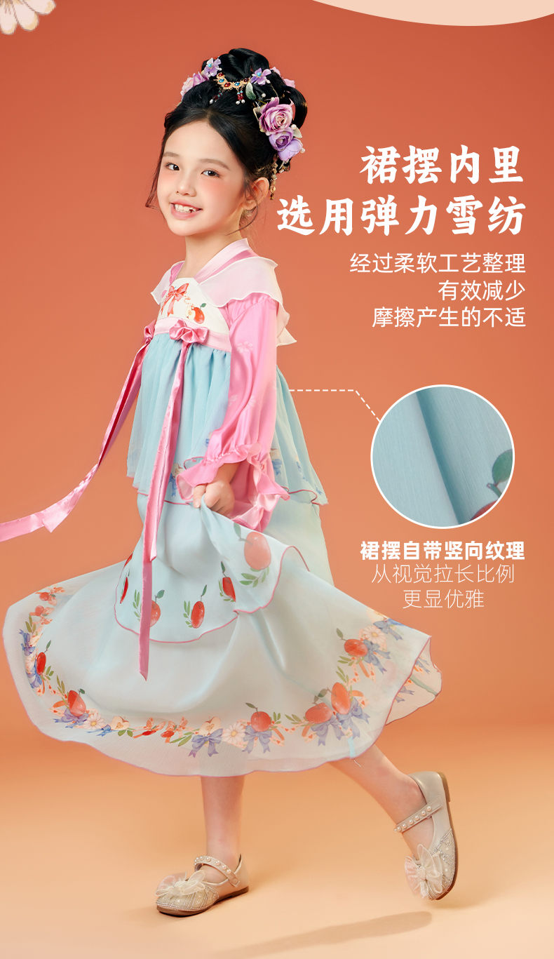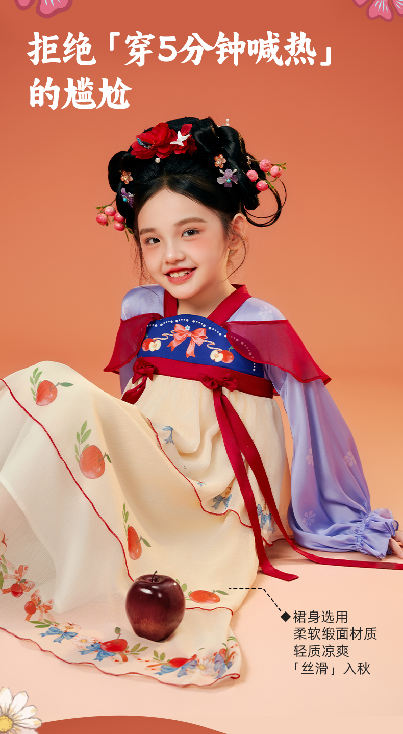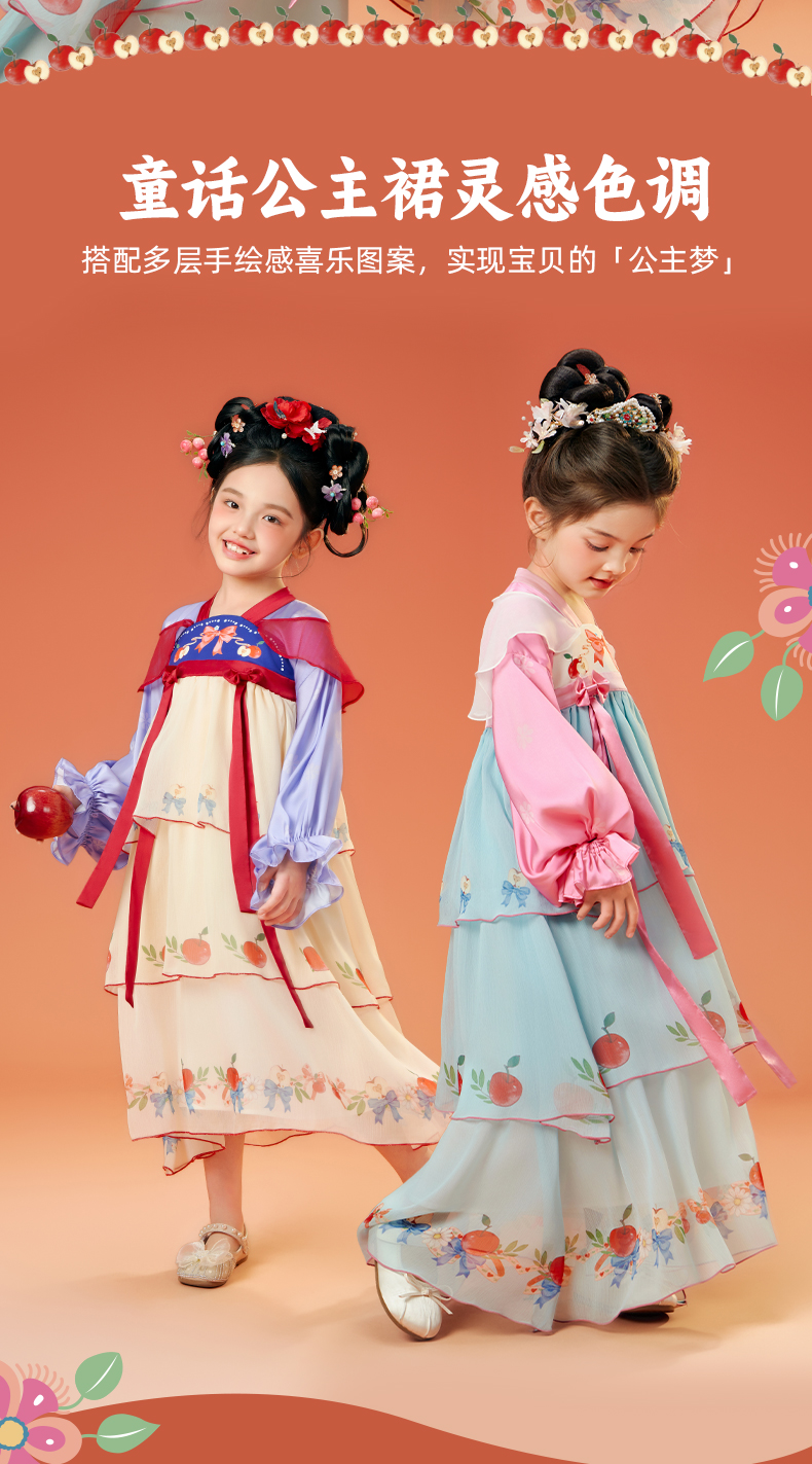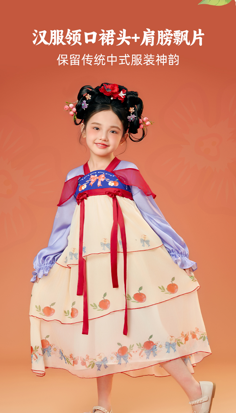 年衣童装汉服连衣裙女童25秋季新款中式长袖蛋糕裙月下花糖连衣裙