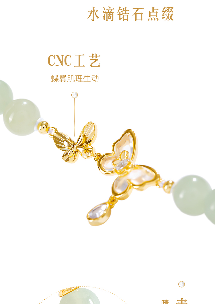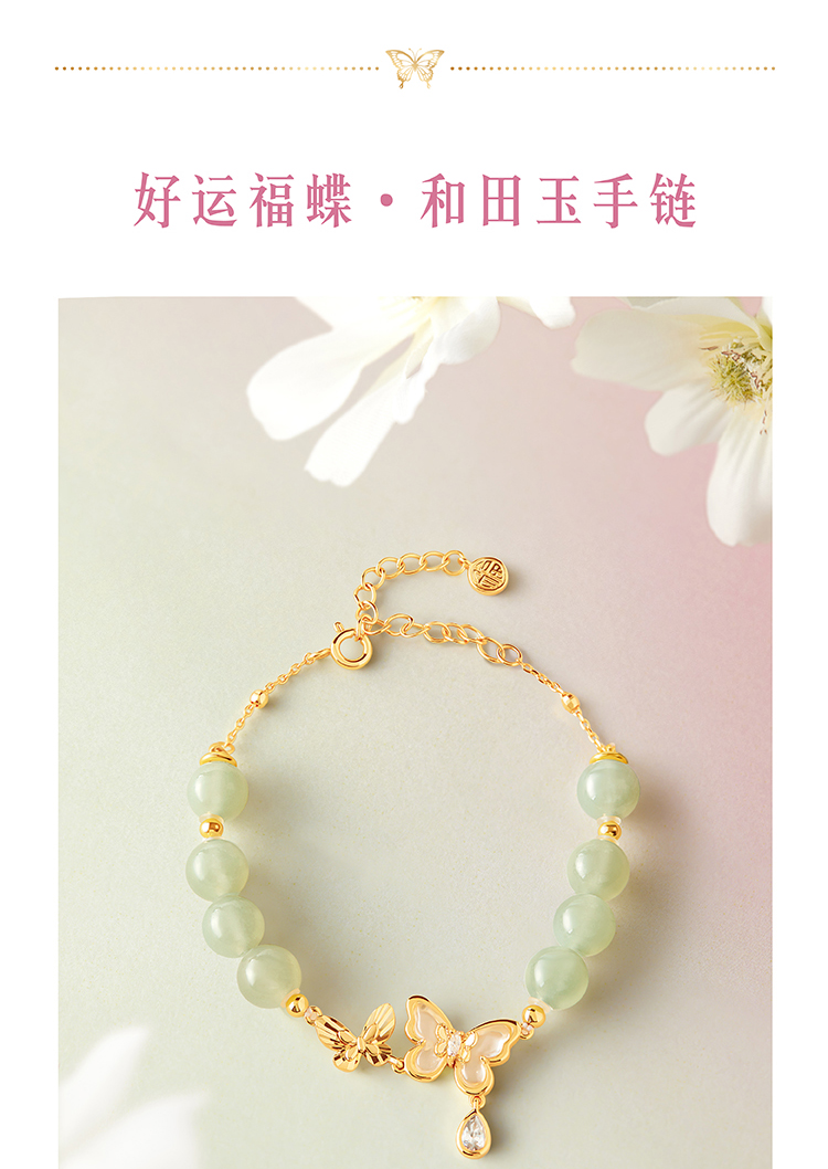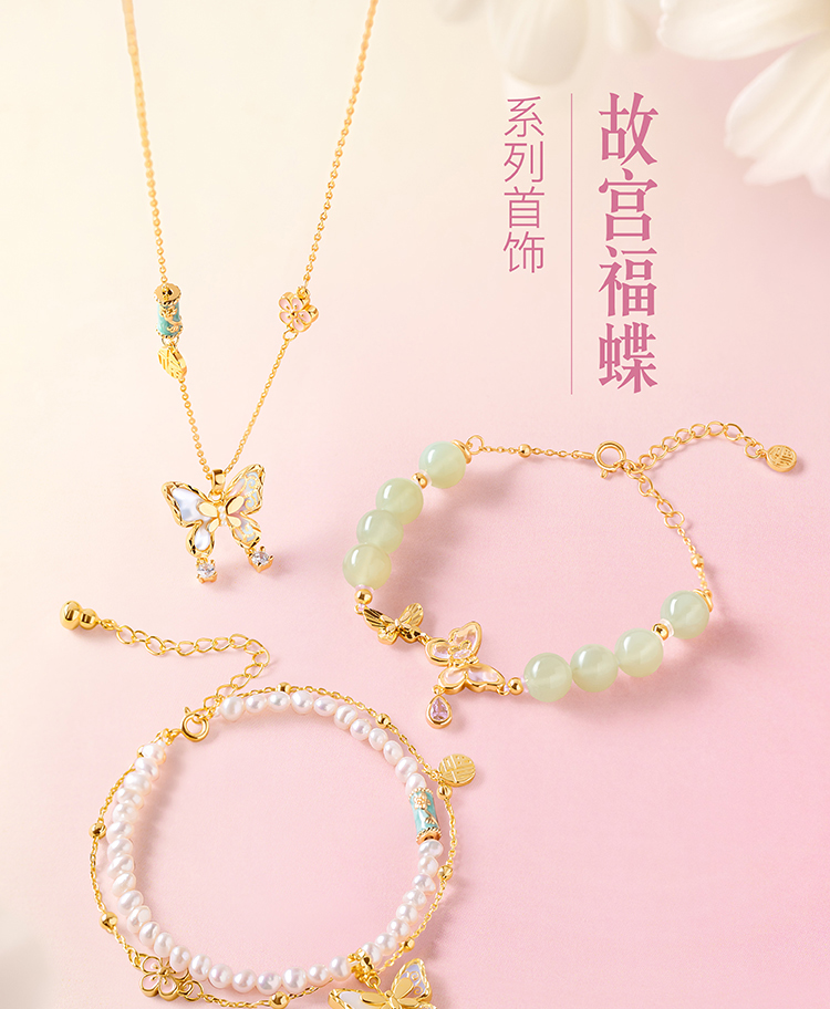 【故宫饰品】故宫福蝶系列蝴蝶手链项链和田玉手串文创新年生日礼物