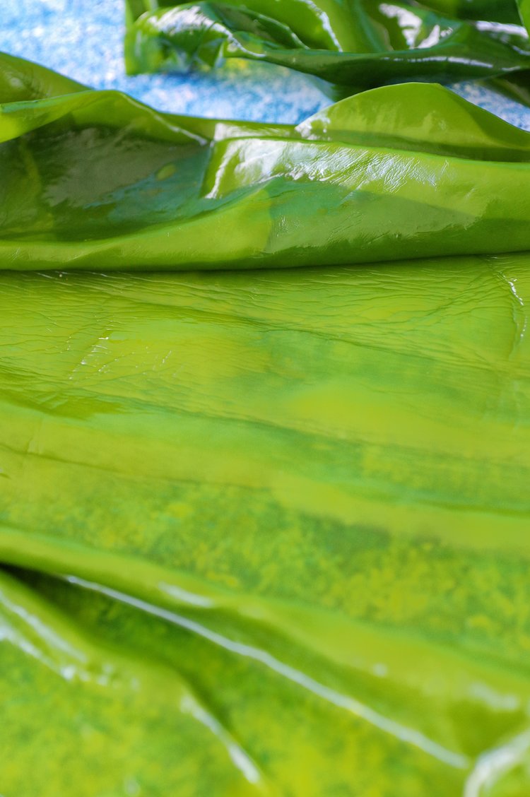 我们卡在嫩芽阶段提前采收,一棵海带能用于我们这款产品的部分不到20%。