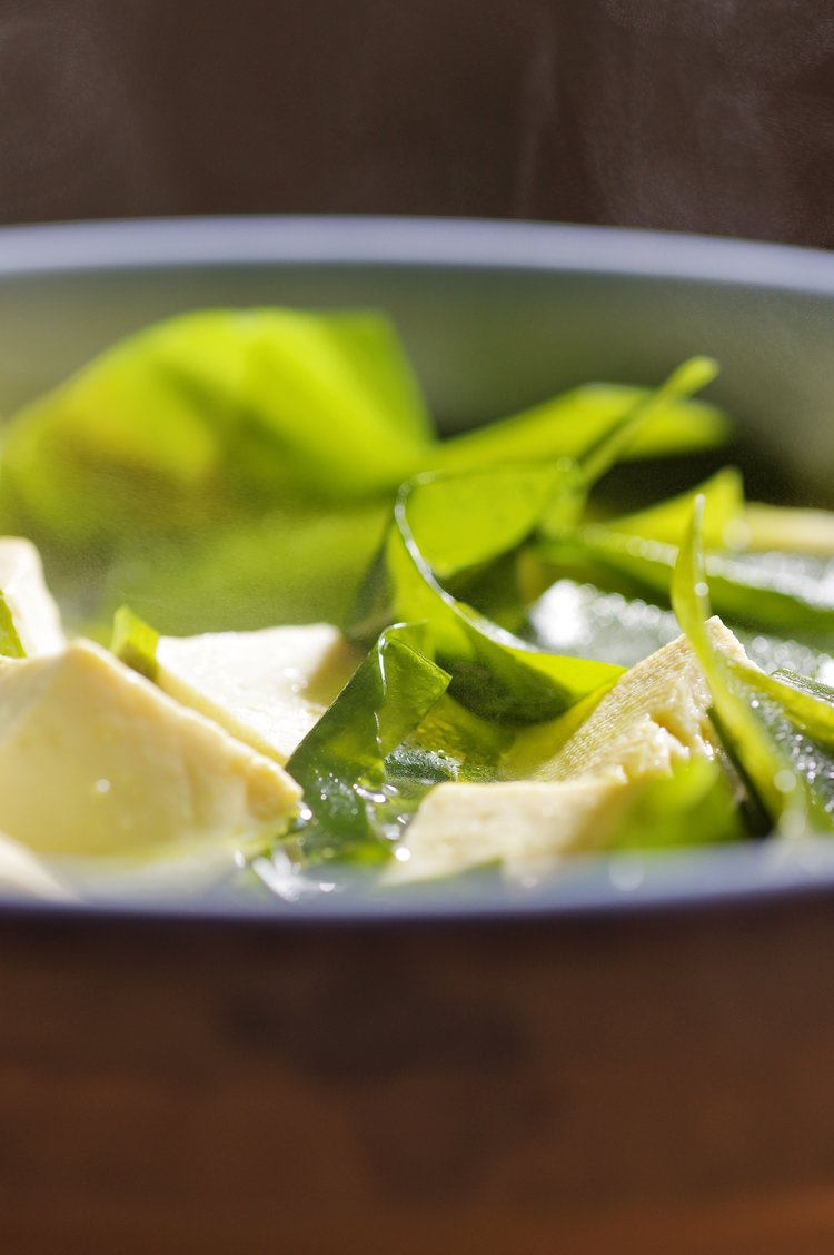 汤快好时,海带嫩芽放入,煮1-2分钟即可关火。