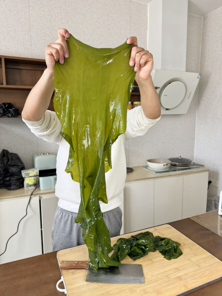 常规海带为了追求单颗重量和产量,会一直养到完全成熟期再采收——这个时候纤维已经硬了,怎么煮都难免带韧性。