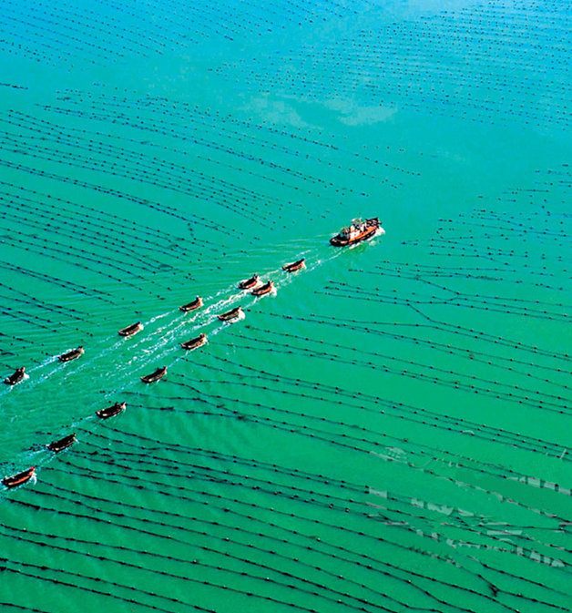 夏天播种,然后在冬季低温海水里慢慢生长。