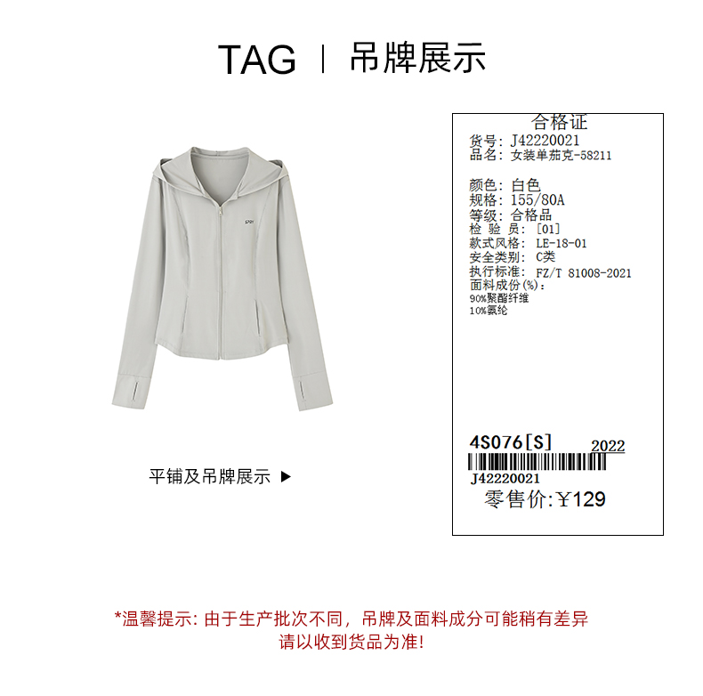 女装连帽凉感科技面料UPF50+姐姐同款防晒外套-58211J4222002