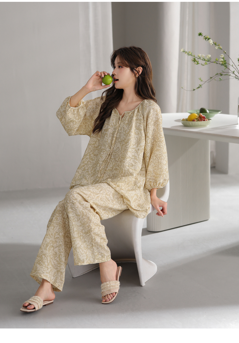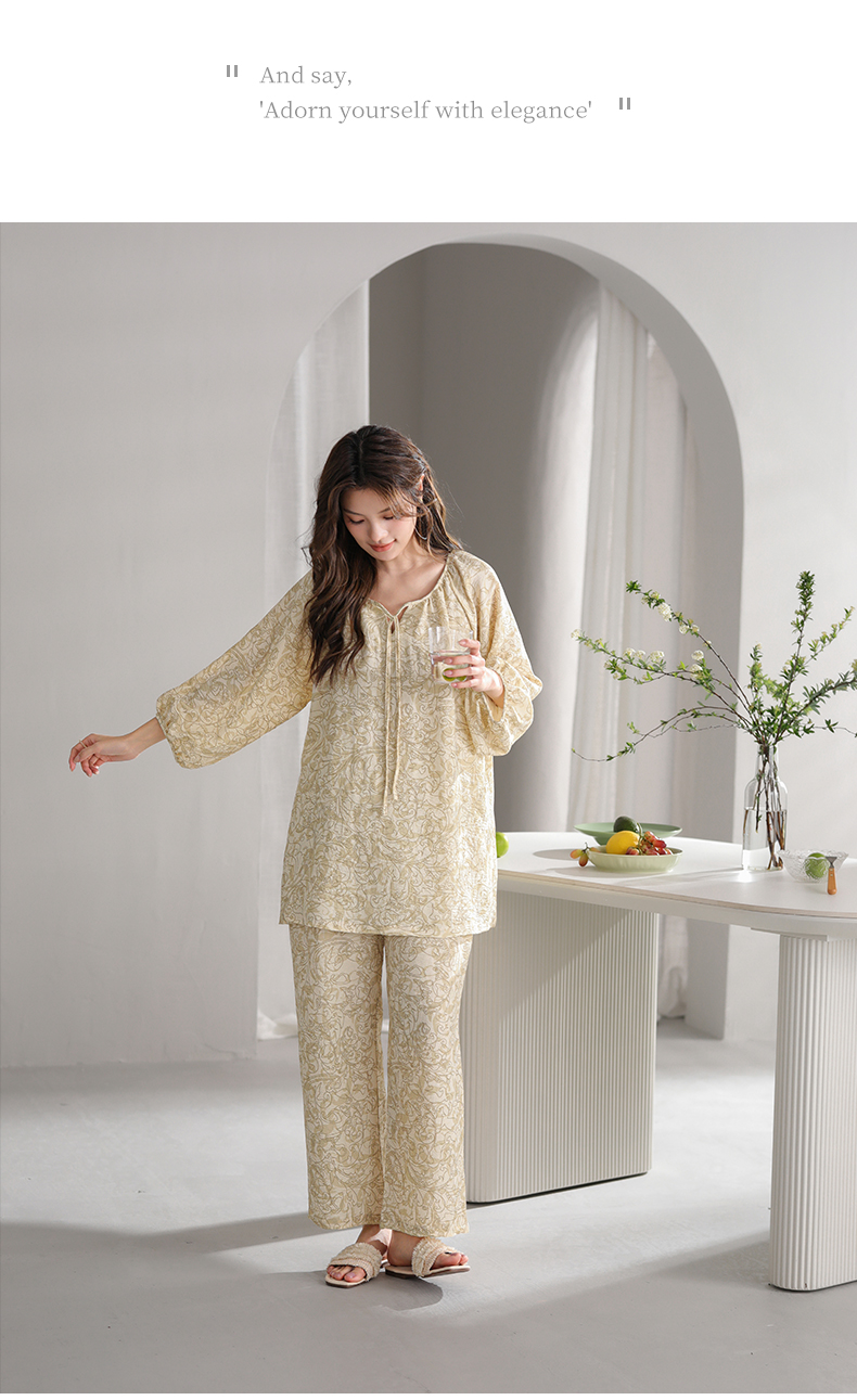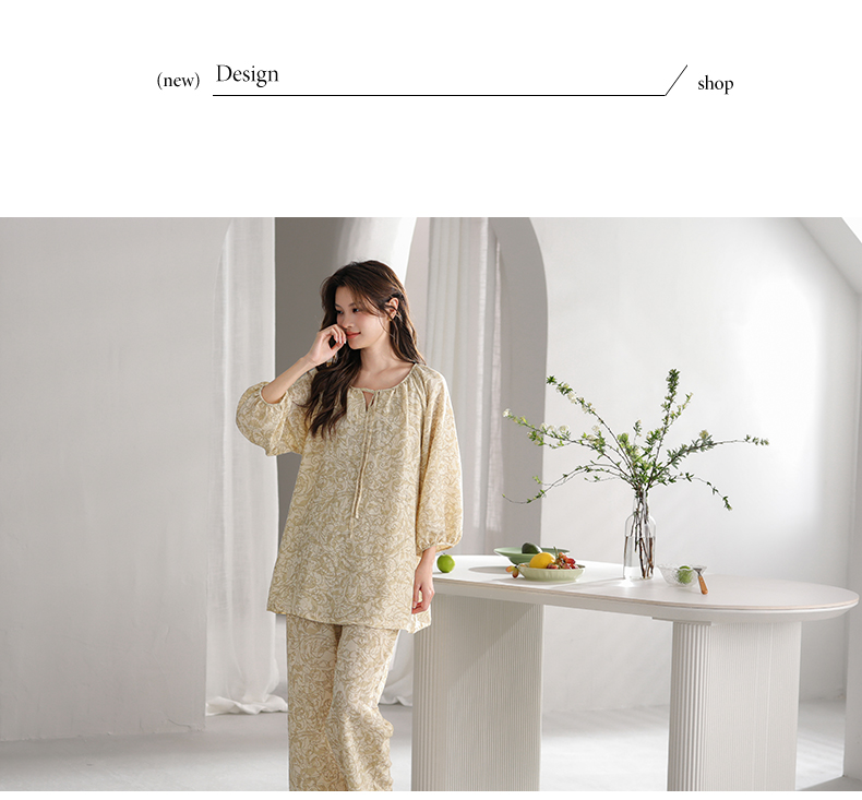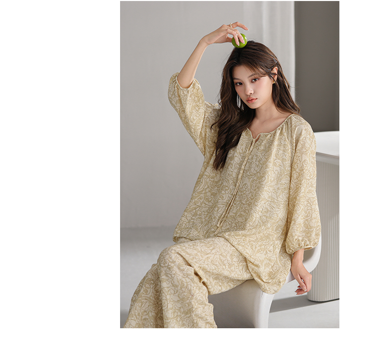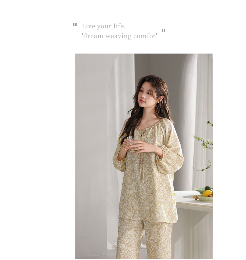 可人儿原创设计新款泡泡绵女士睡衣春秋长袖时尚可外出家居服套装