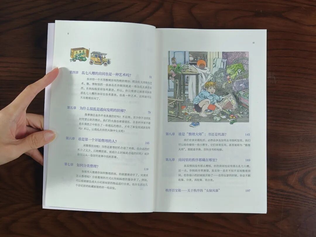 用简洁易懂的语言给孩子们解释了生活中秩序与混乱之间的相互作用、整理的重要性以及为什么混乱使人类进步。