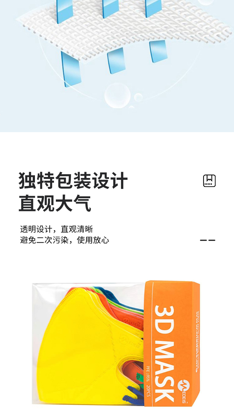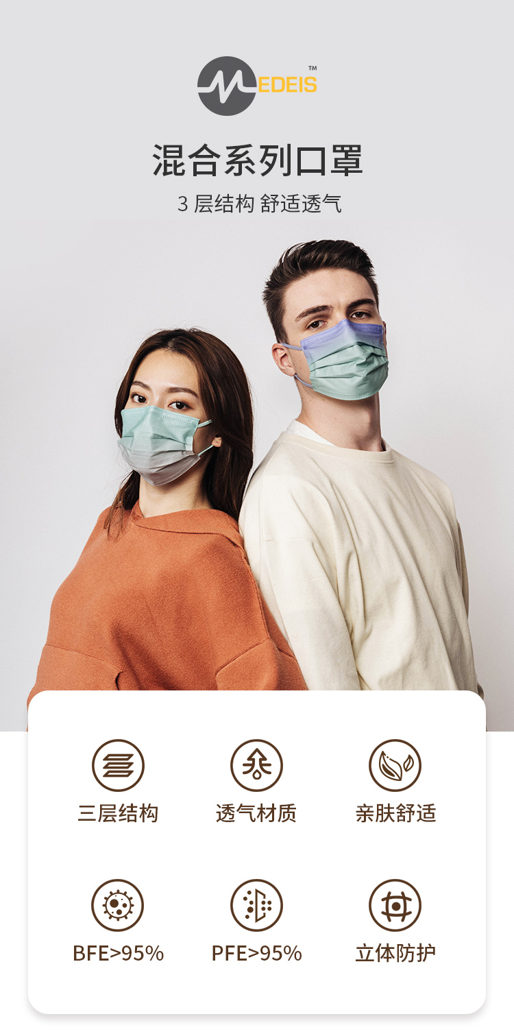 平面款【高颜值口罩】MEDIES香港明星SASA同款口罩 3层立体透气混搭/耳挂彩虹纯色/渐变色/潮色