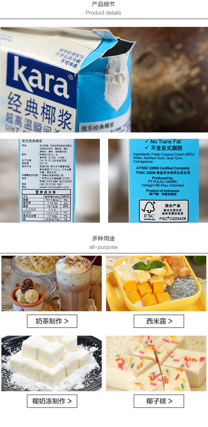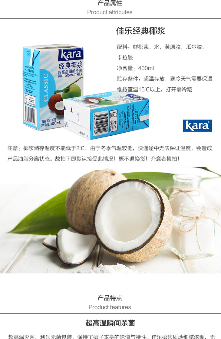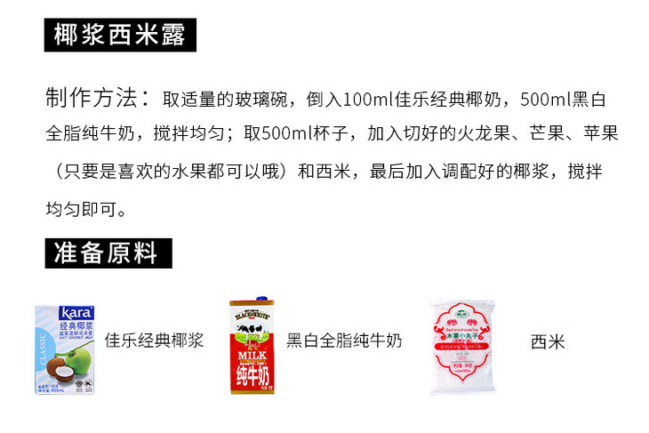 佳乐椰浆 经典椰浆400ml 纯正椰浆1L