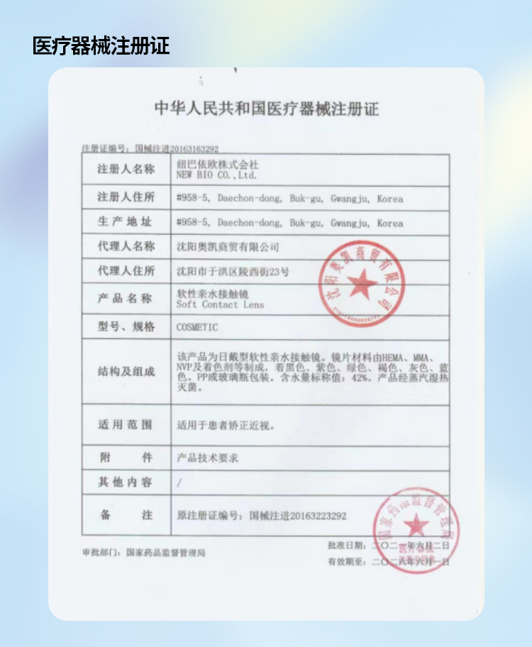 韩产NVP非离子材质镜片