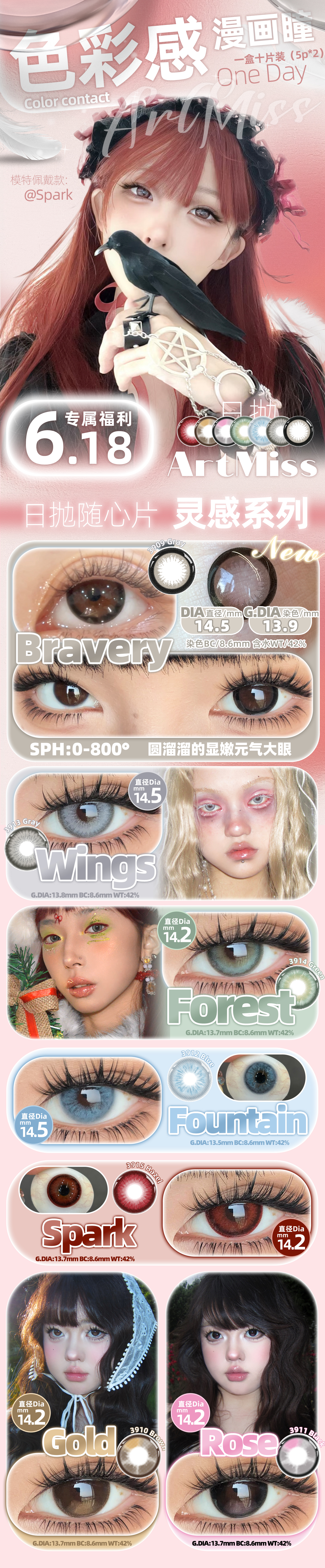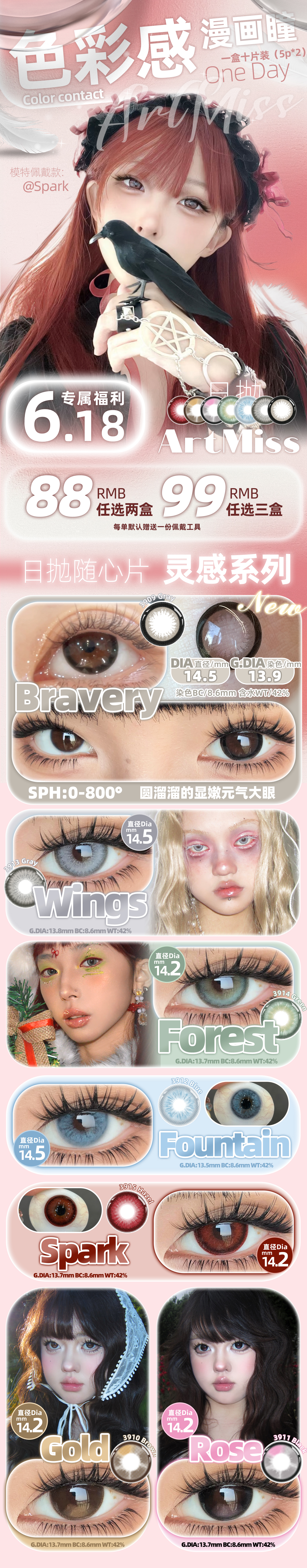 下单请严格按照日抛色板上的款式名称,并备注日抛❗以"盒"为单位进行下单!以免与单片装年抛同款混乱而导致发错!