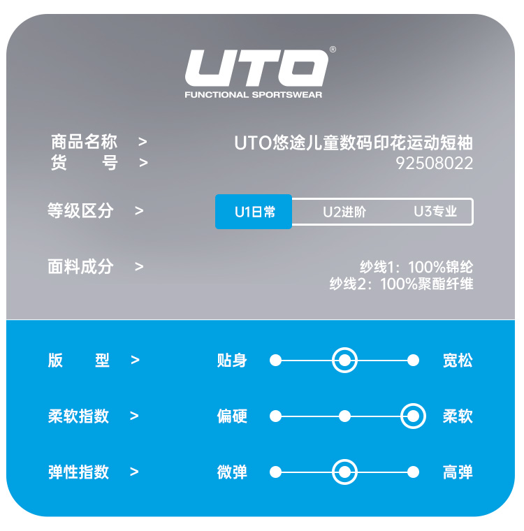 UTO悠途潜心于贴身运动装备的研发、设计和生产。从纤维到组织,从设计到工艺,在无缝贴身运动装备领域,树立国内标杆。 UTO着力于品牌互联网化,不断采集大量运动数据,为跑步、健身、滑雪等不同类型的运动爱