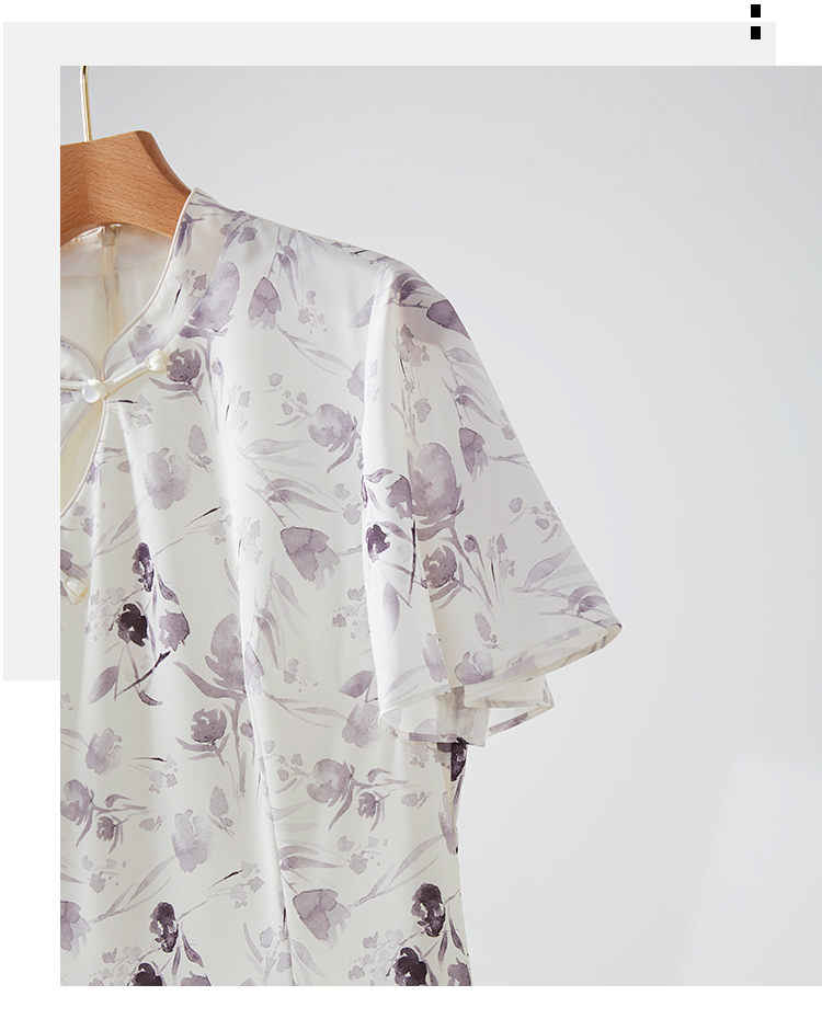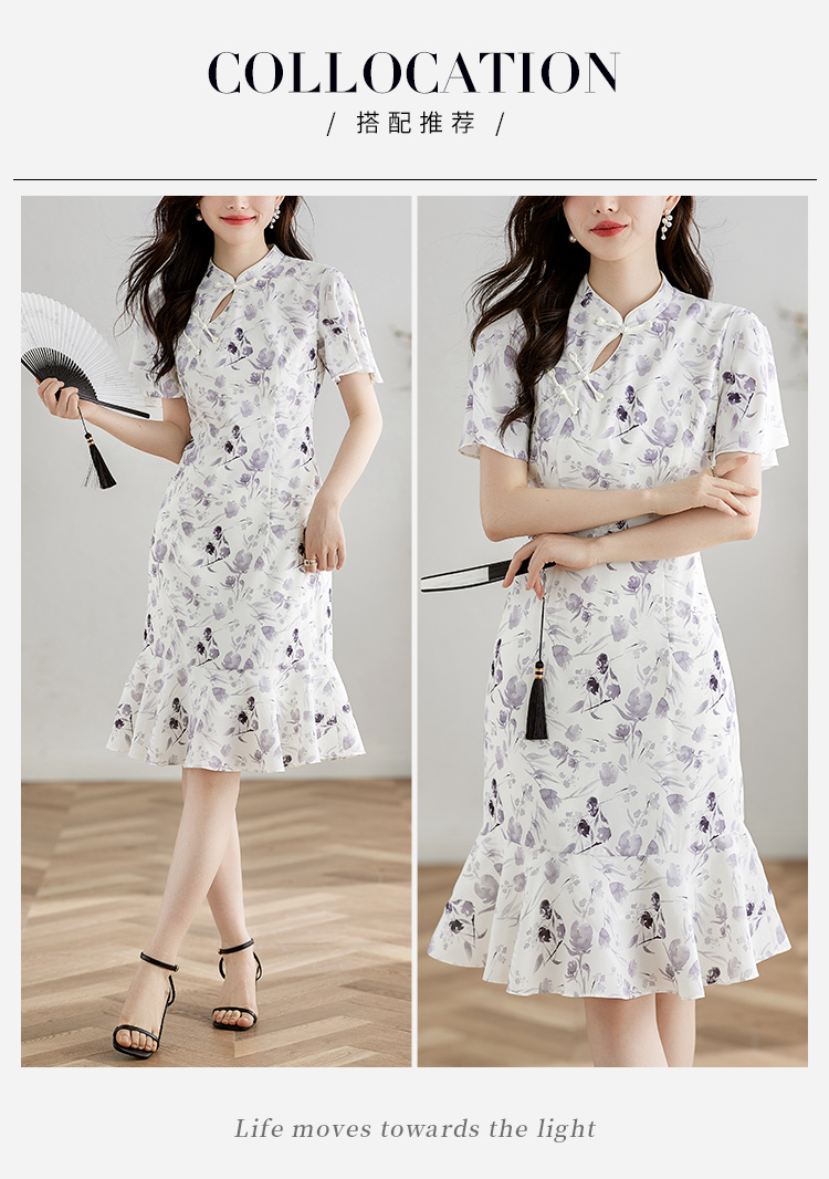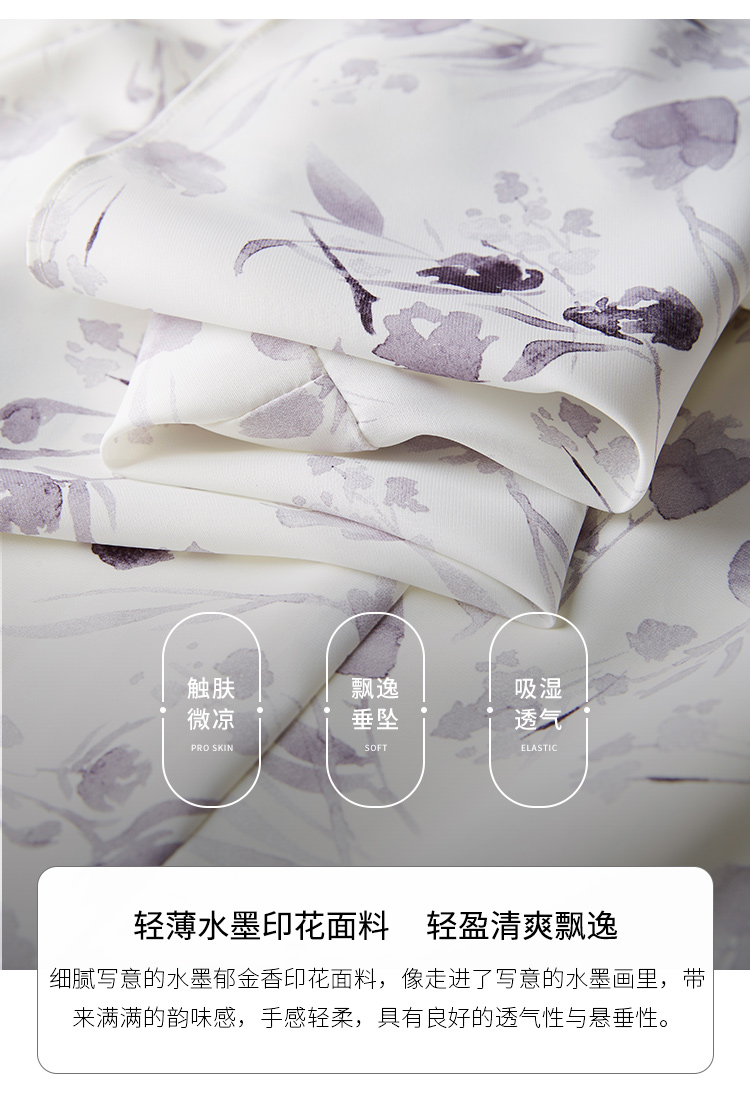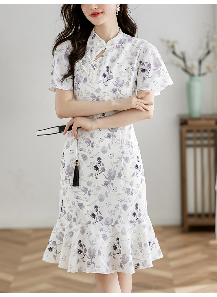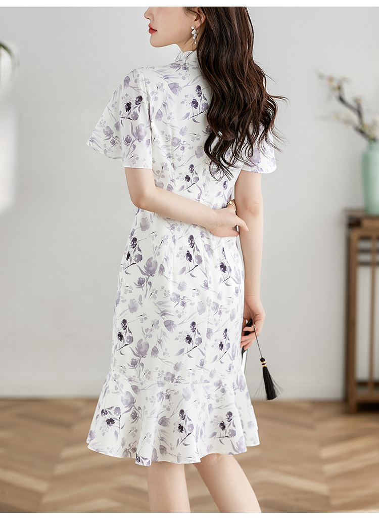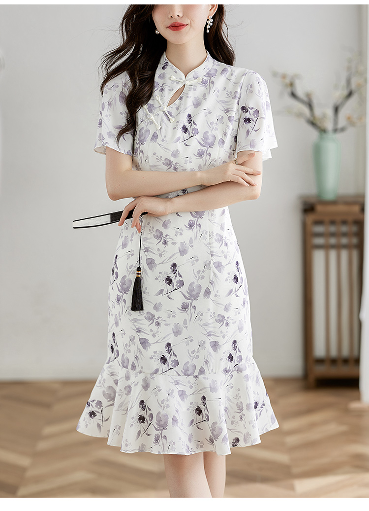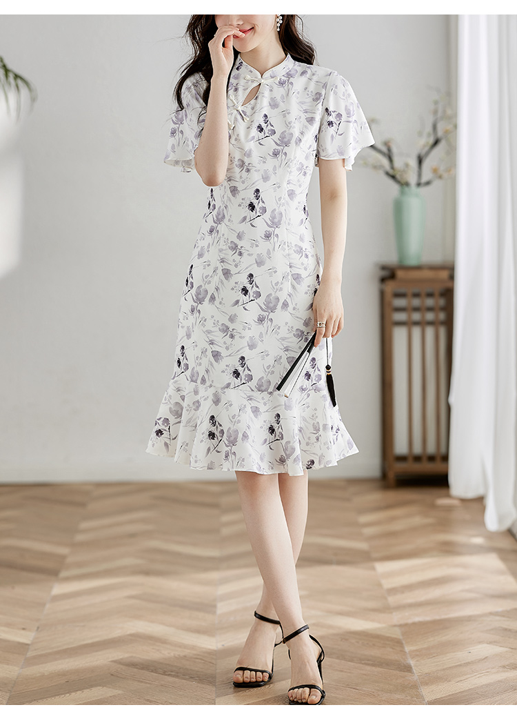 【专属特价】熙世界中国风水墨复古印花旗袍改良裙子女夏季新中式荷叶边连衣裙