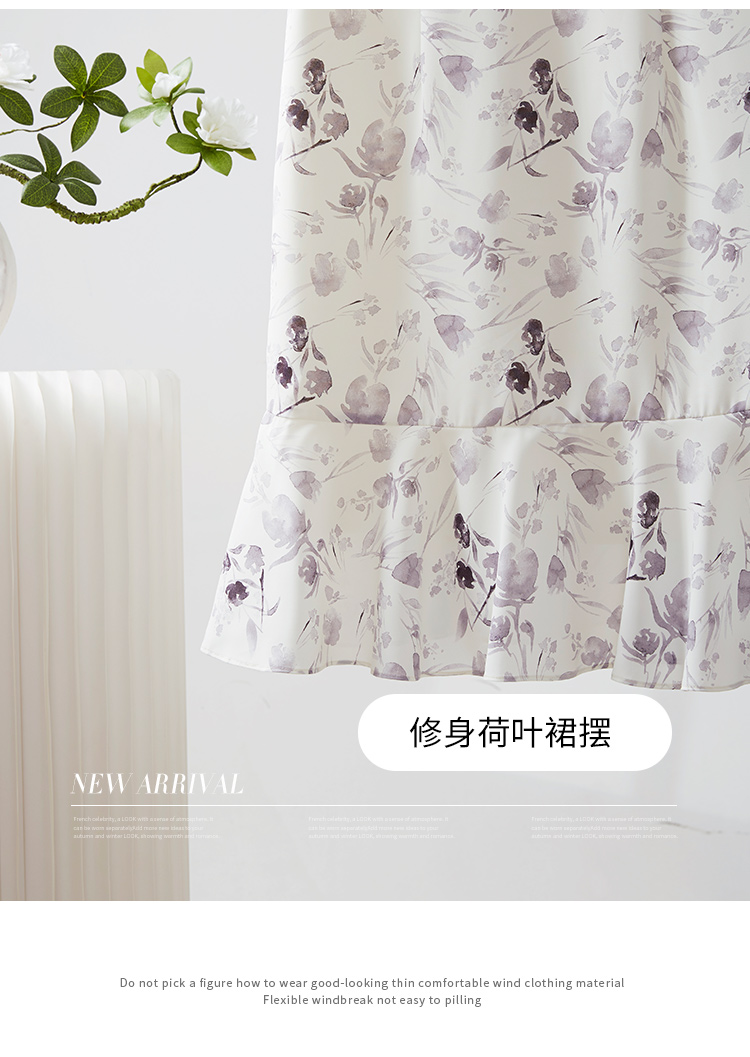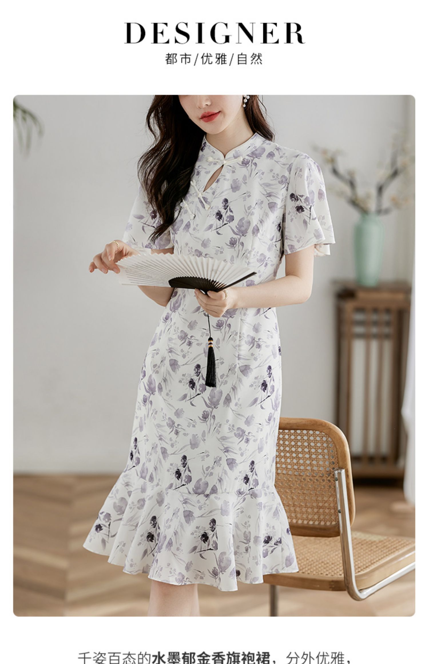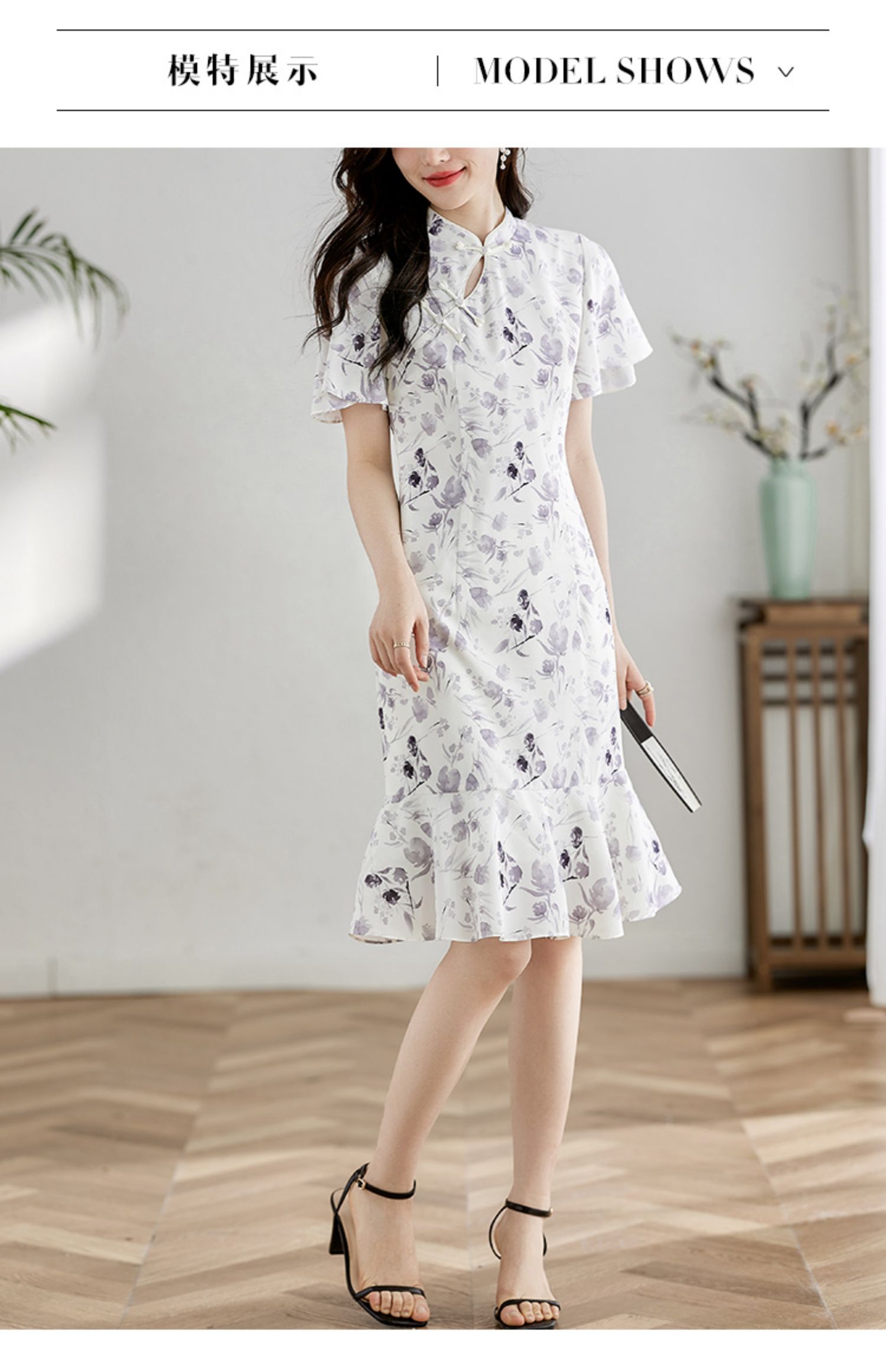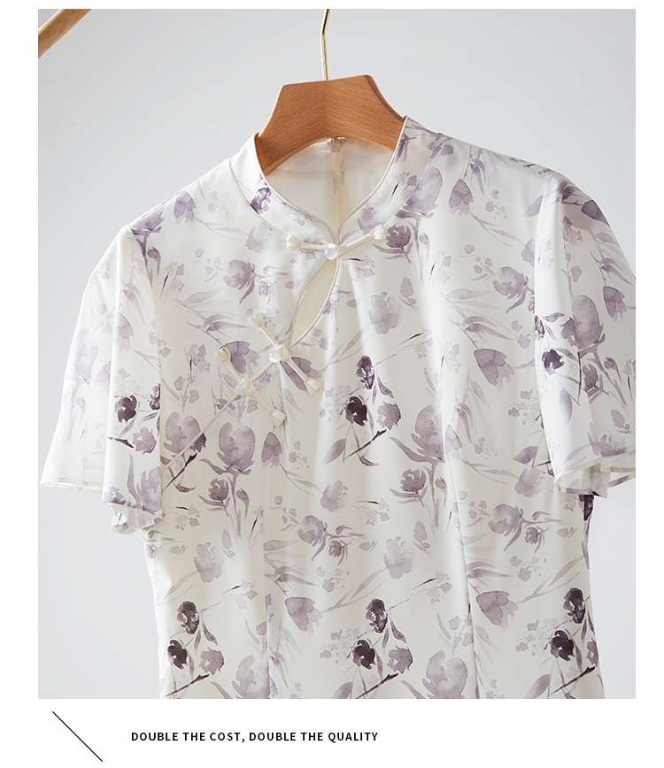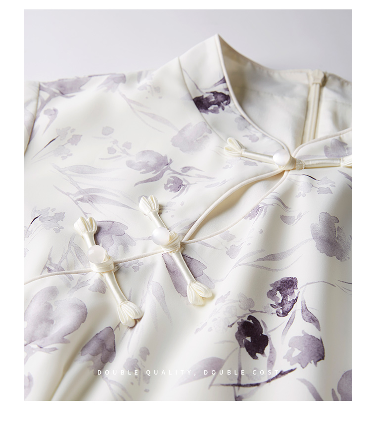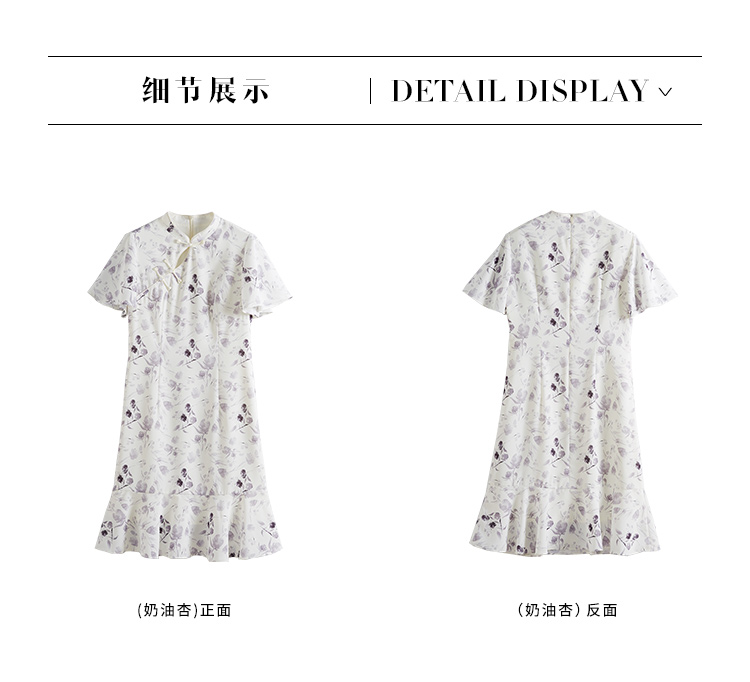 【专属特价】熙世界中国风水墨复古印花旗袍改良裙子女夏季新中式荷叶边连衣裙