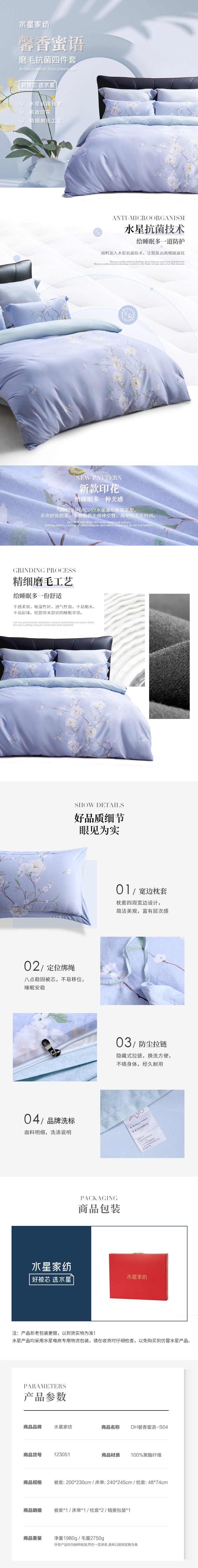 水星家纺全涤磨毛四件套—馨香蜜语200*230