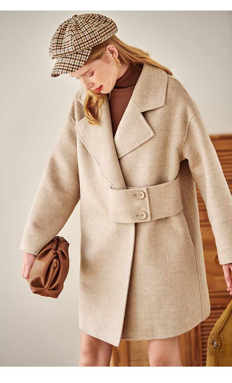 欧芮儿中长款双面呢过膝外套女冬季新款小众设计感羊毛呢大衣