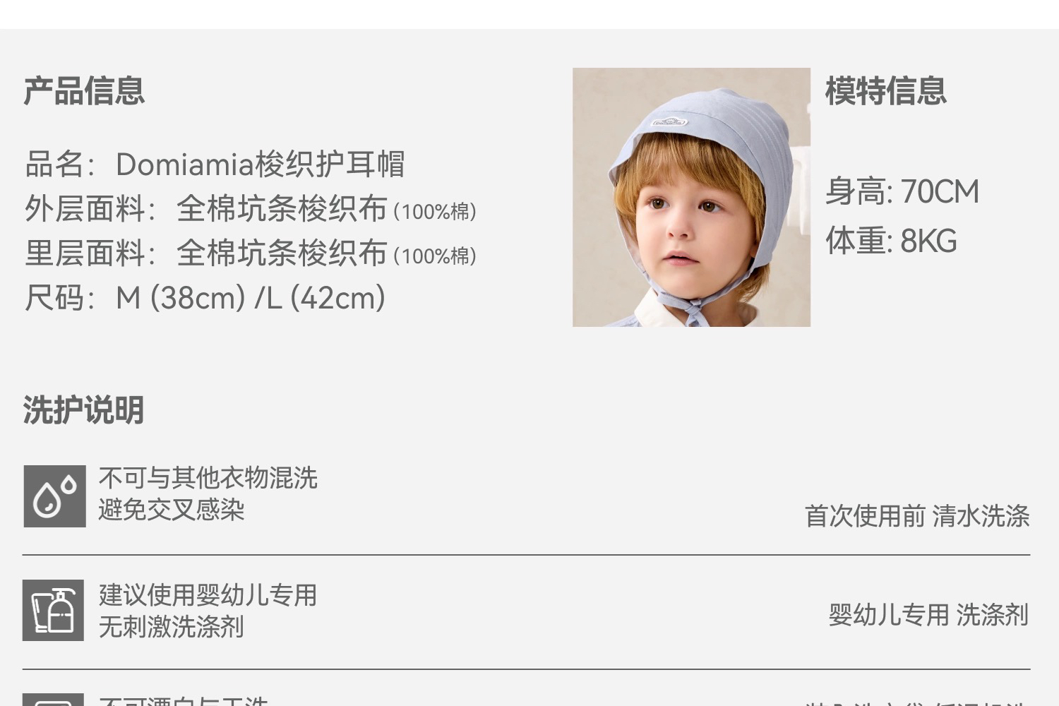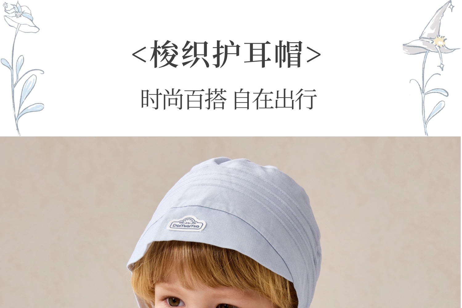 Domiamia 男宝宝梭织防晒护耳帽 0-3岁超轻薄遮阳帽