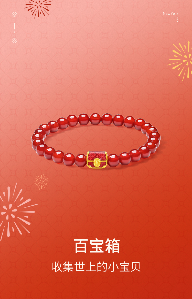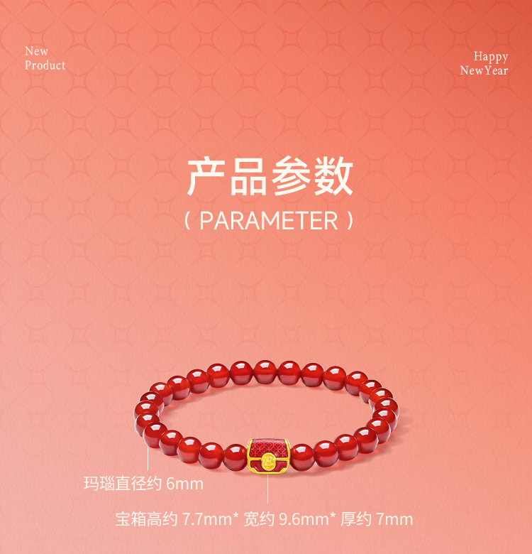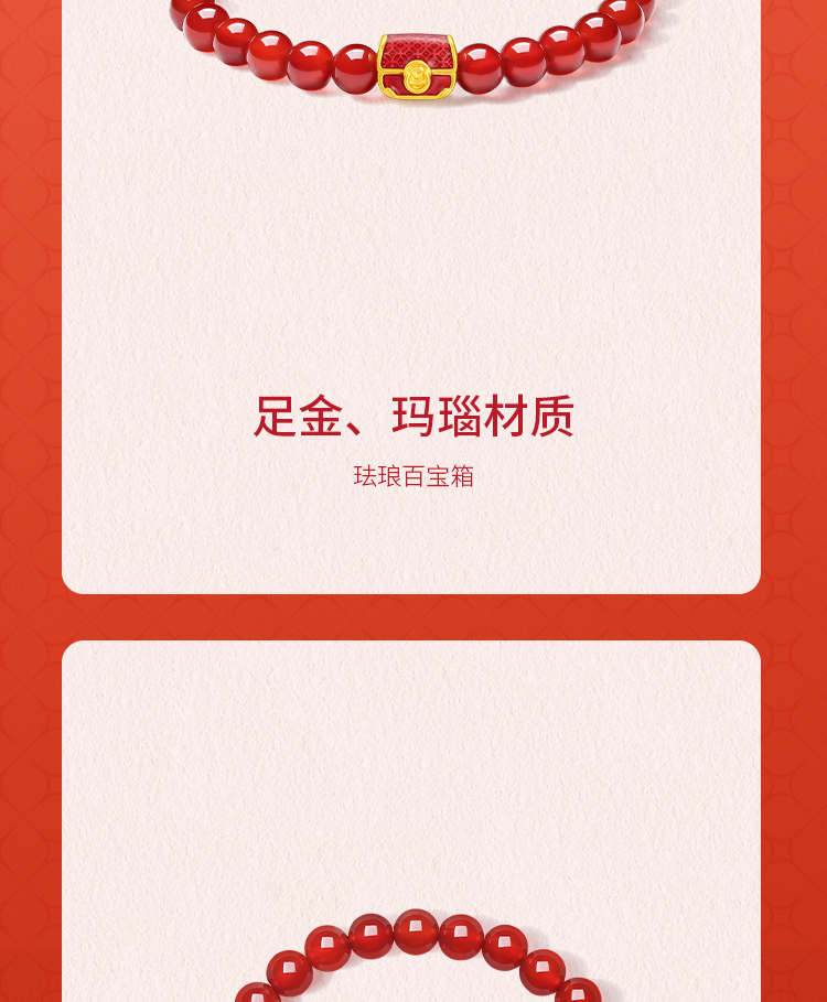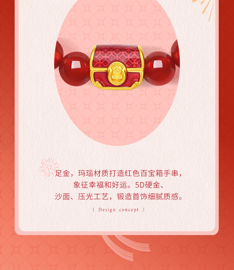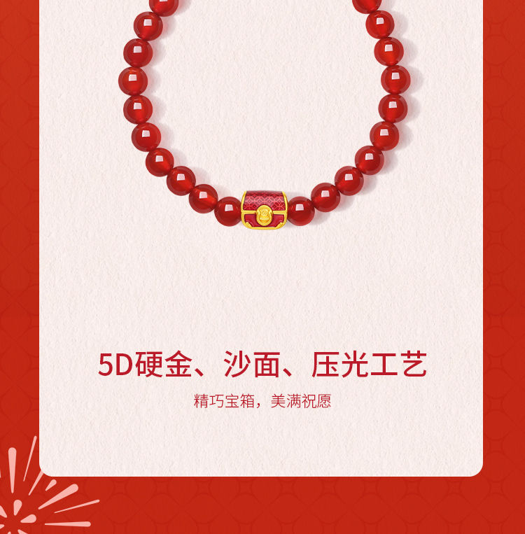 周六福黄金手串女款5d硬金定价百宝箱足金玛瑙珐琅宝箱新年礼物