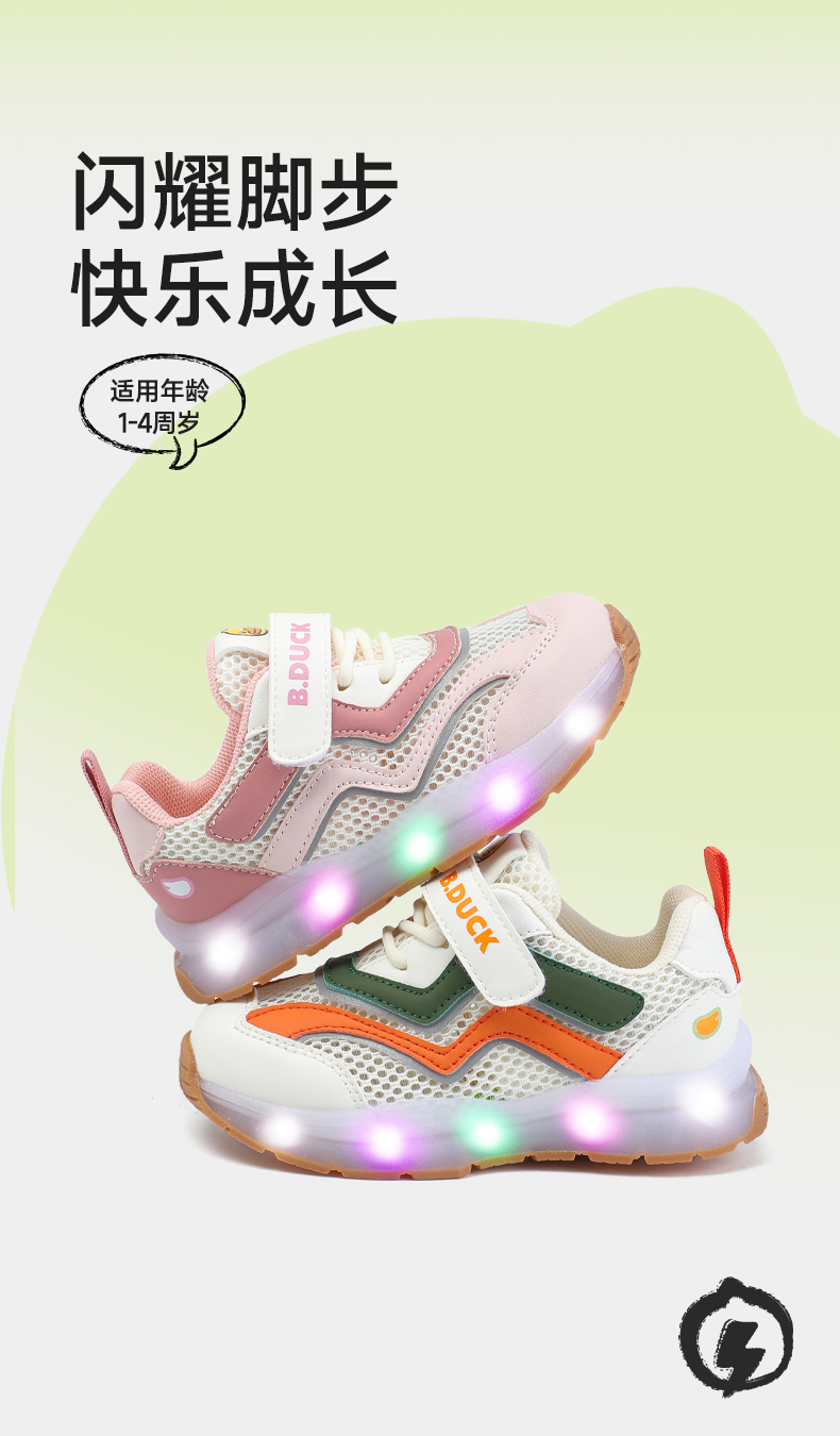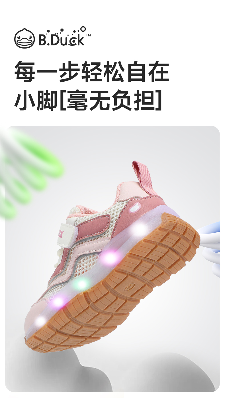 B.Duck小黄鸭童鞋夏季儿童运动灯鞋18-25 B1686722