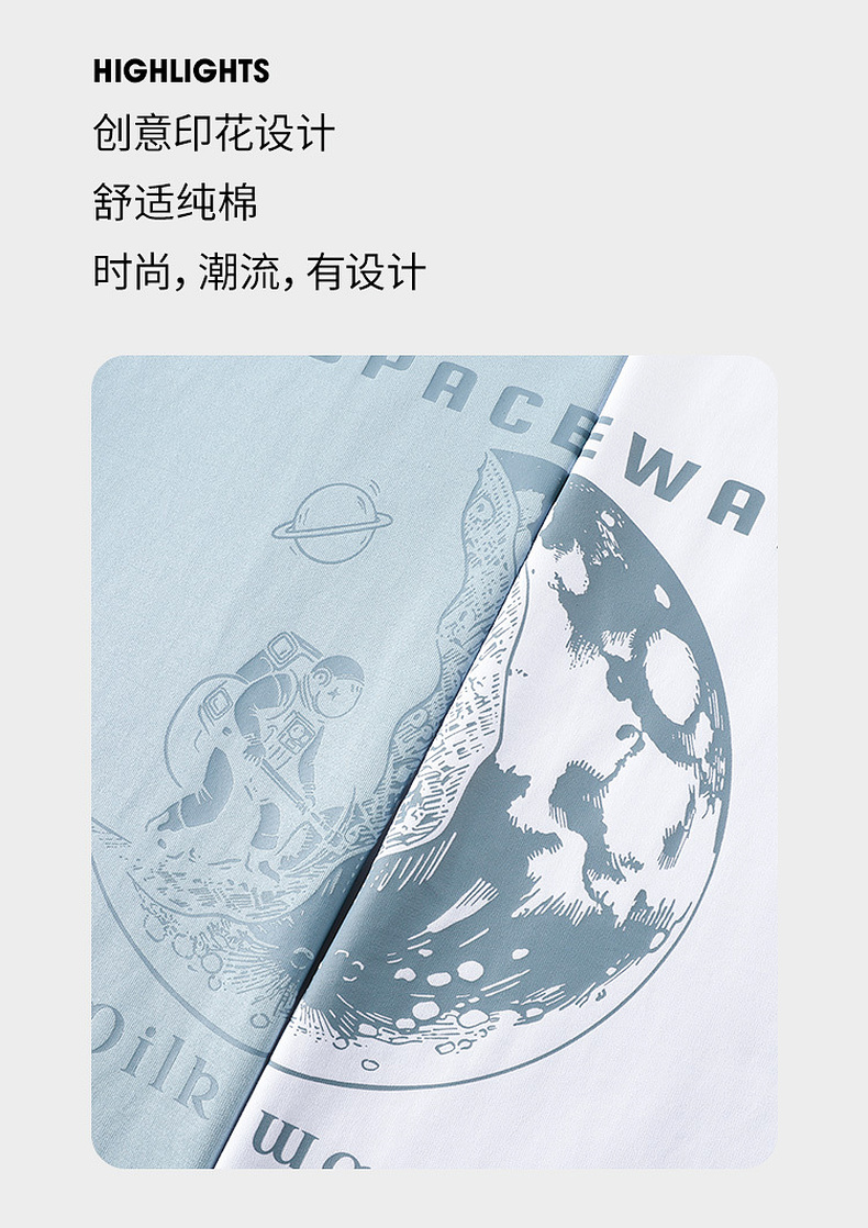 GXG男装【100%棉】25夏季星空宇航员图案轻薄透气男式圆领短袖T恤K&C