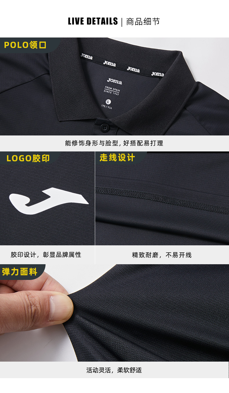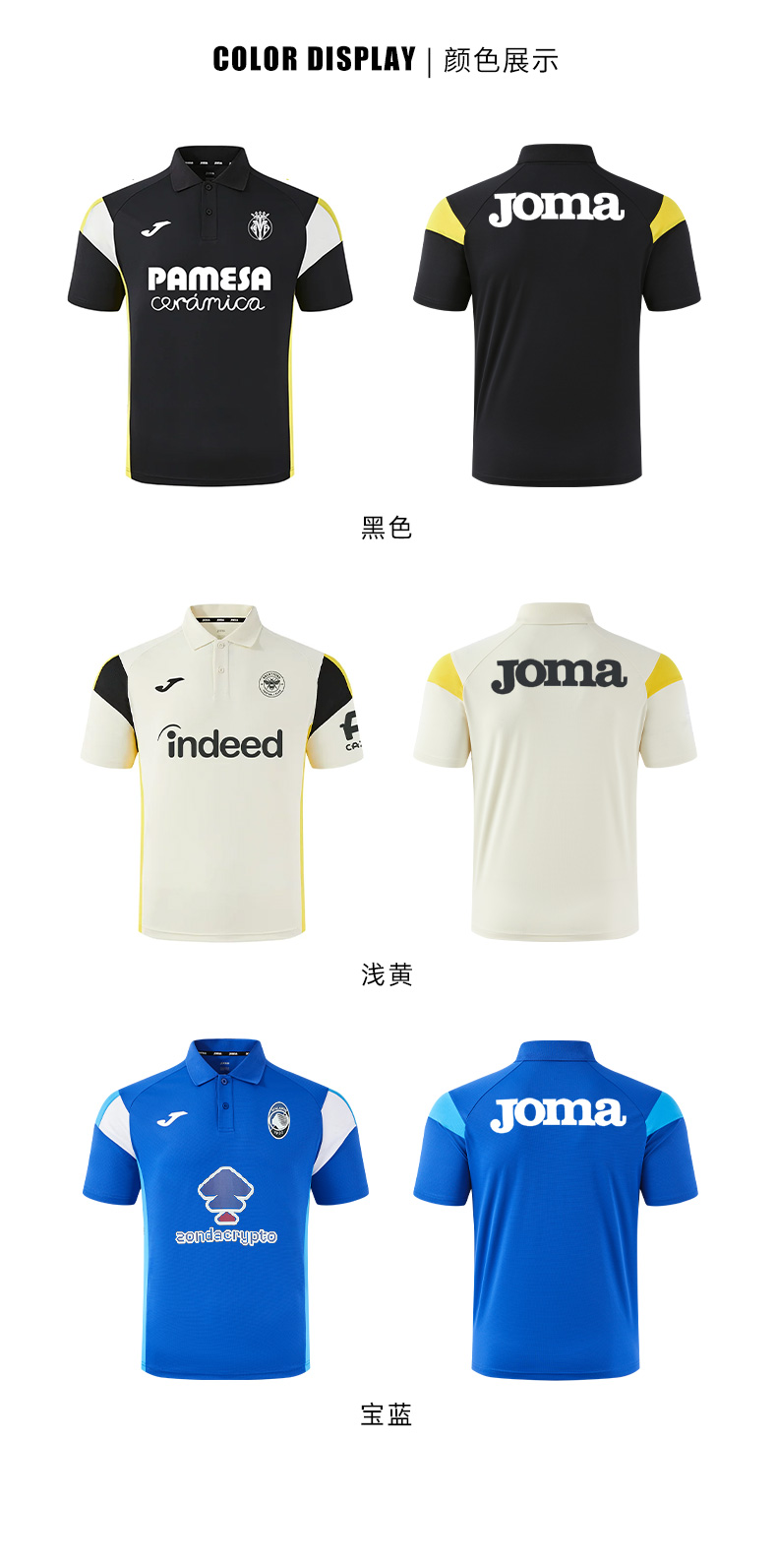 Joma26新款POLO衫运动短袖比利亚雷亚尔足球训练服户外跑步透气