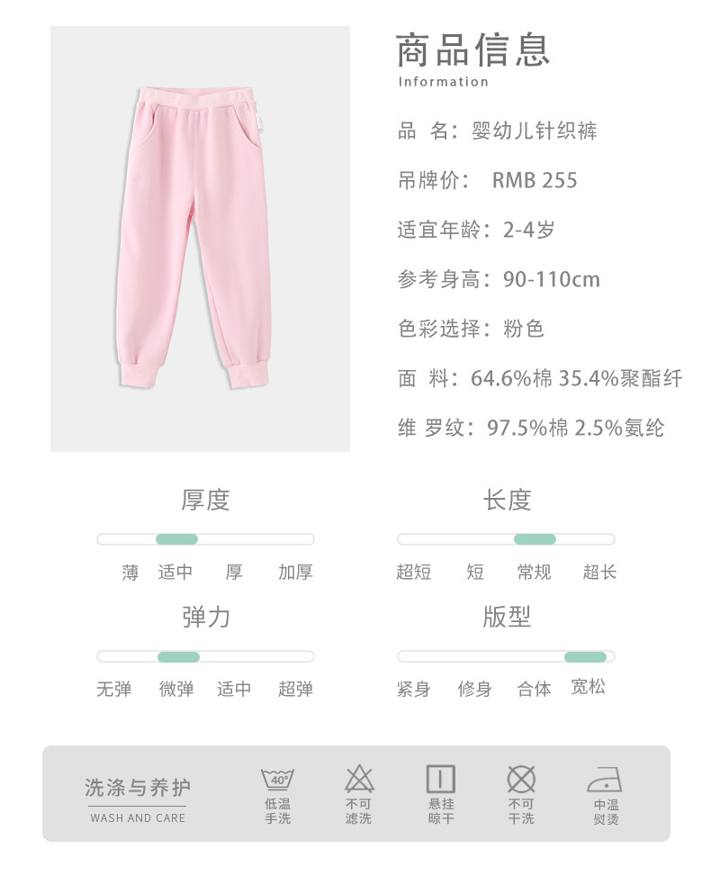 丽婴房-童衣类(春)F2长裤A_中粉\艳粉