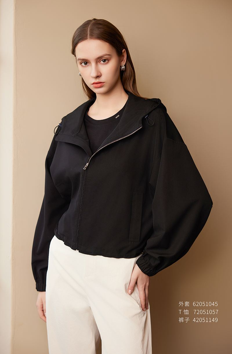 【短款连帽外套】25年春季新品女士羊毛外套时尚百搭梭织小外套