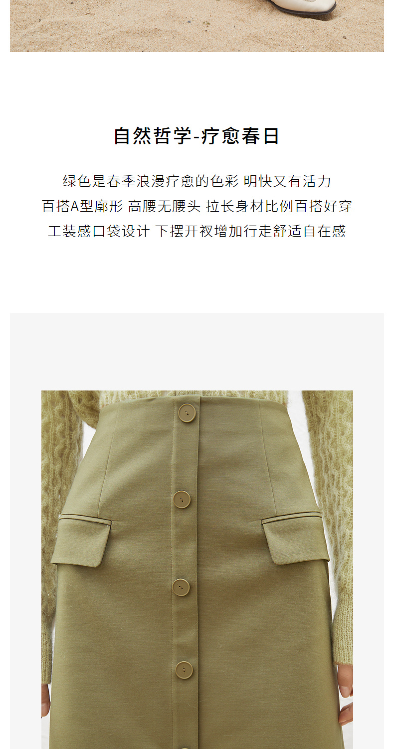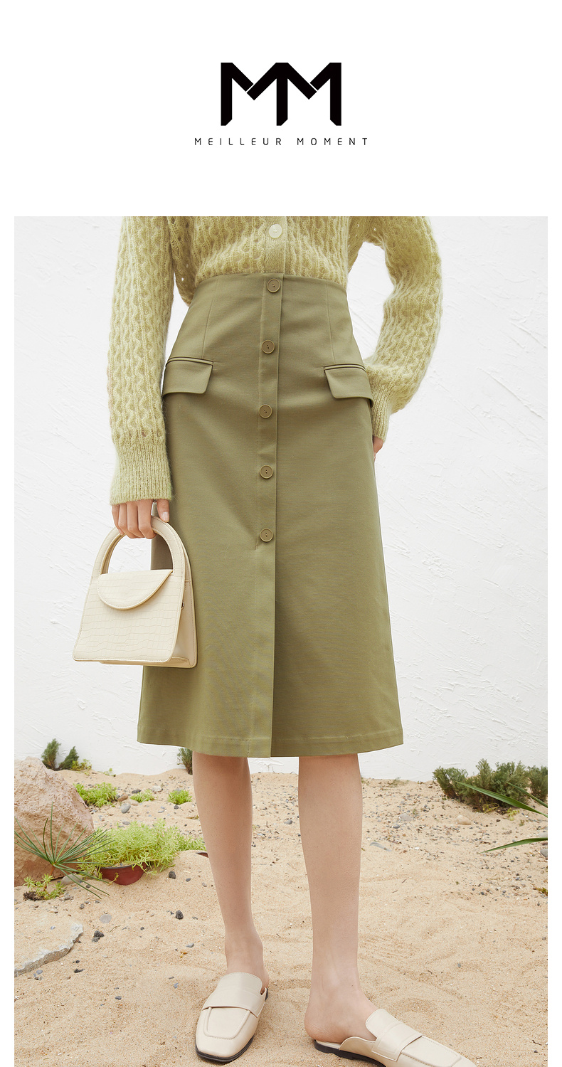 【商场同款】麦檬春工装风口袋设计前开叉半身裙5D2141331
