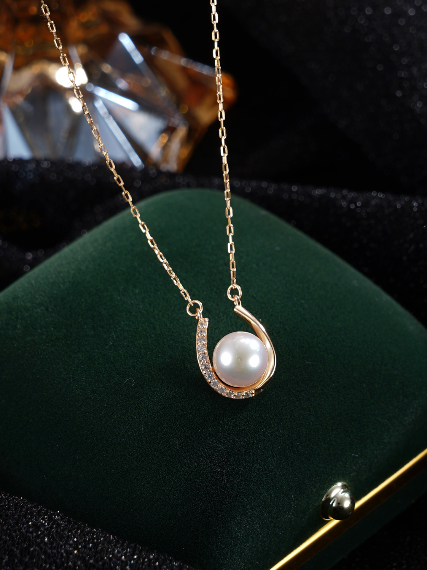 子佩集【珠光马蹄】银S925珍珠惜王妃套链【HJYTL006】8mm珠镀金马蹄半环2601