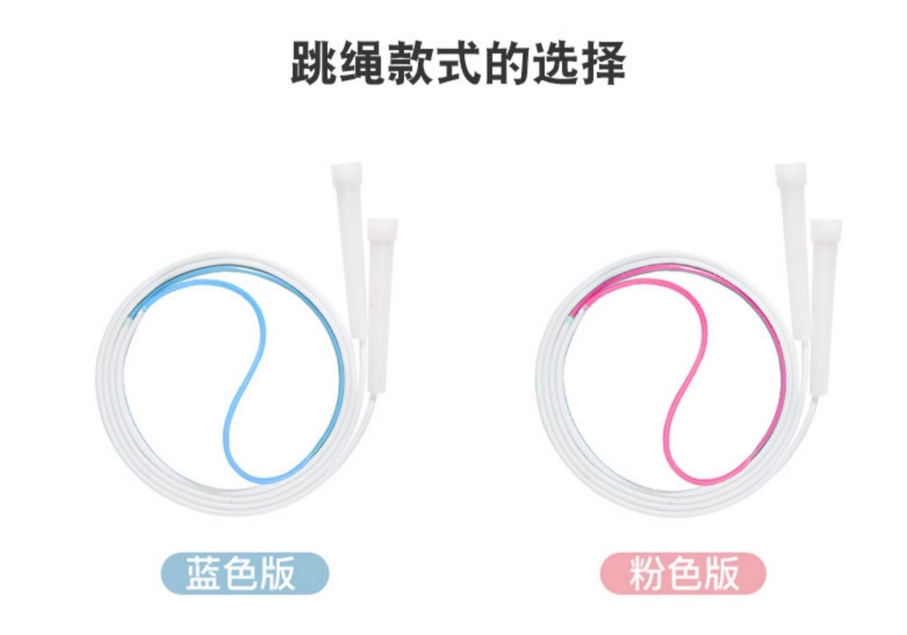 沙士跳绳2.0有蓝色和粉色两款。按照孩子跳绳的水平分为经典款(适合每分钟跳绳不到130个)和极速款(适合每分钟跳绳130个以上)。