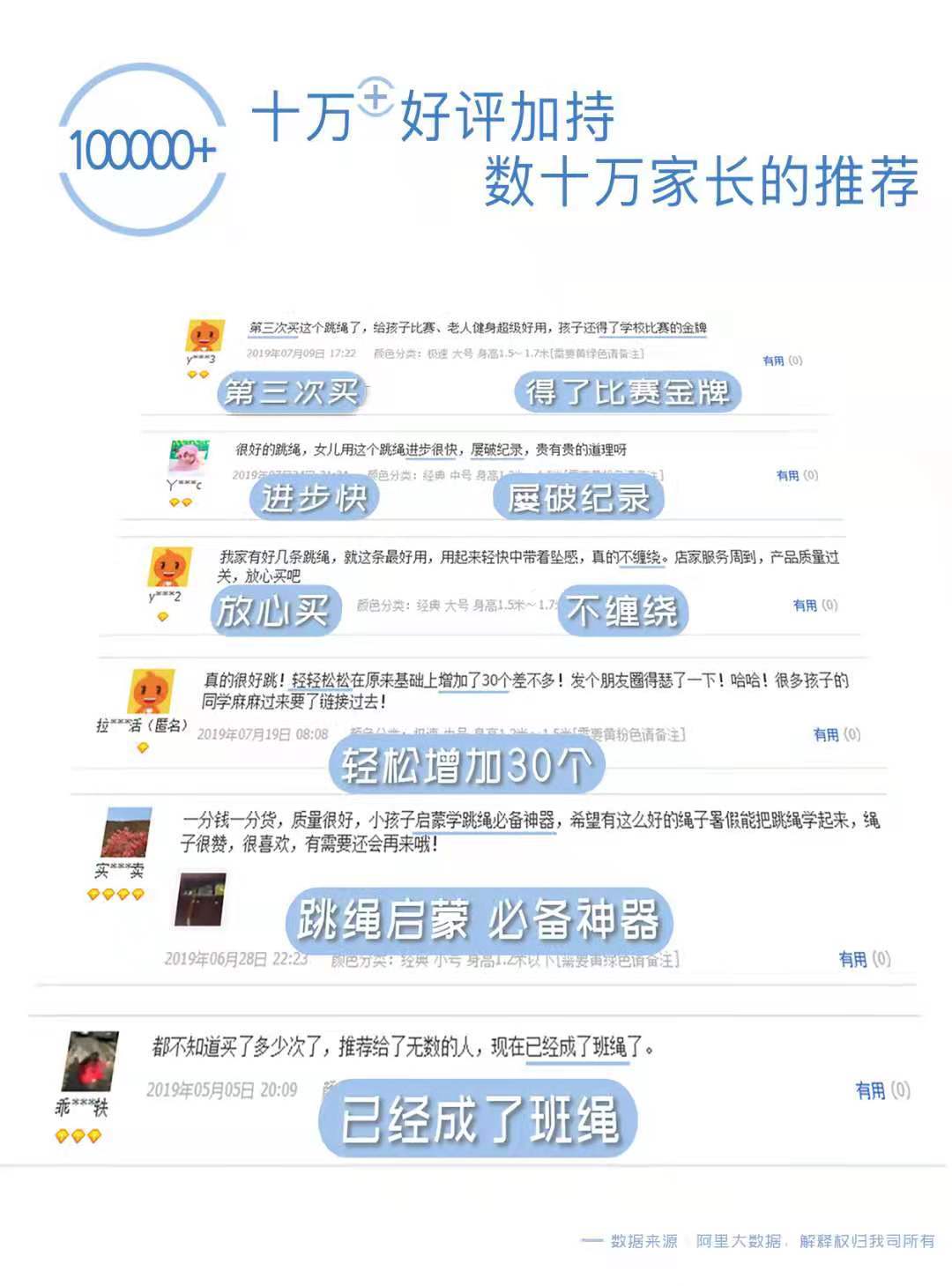 专业的事情交给专业的人,沙式跳绳可以培养孩子正确的发力习惯,提高孩子跳绳速度,10万+的好评,其中50%以上的客户都是客户主动介绍和推荐来的,正因为专业所以更值得信赖。