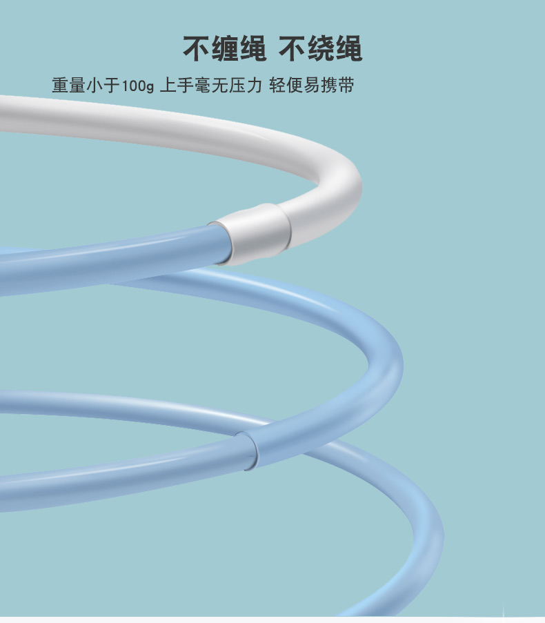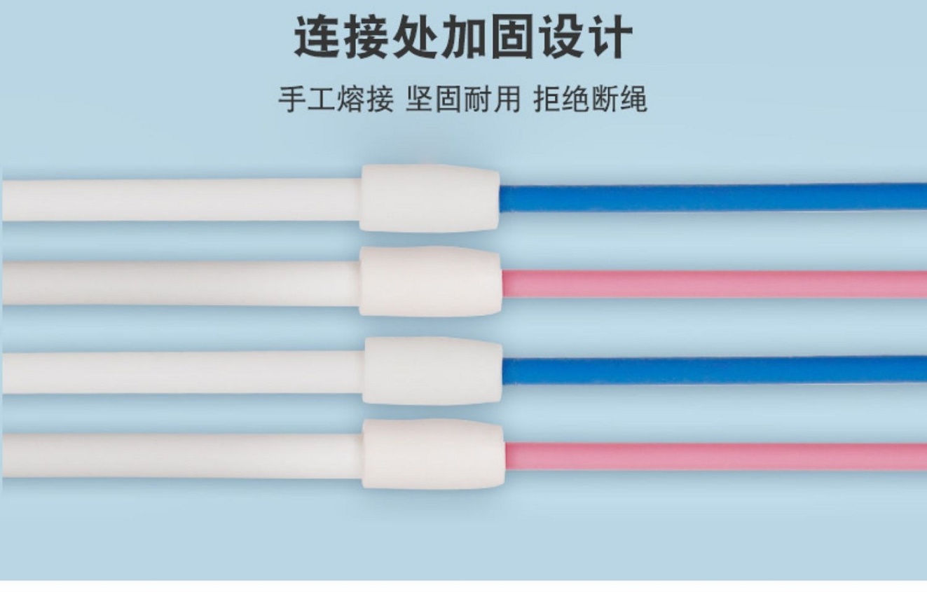 他们测试过不下70种材料和配比,绳子软硬适中的程度,既轻快又耐用,而且绳子不能有弹性,不然会弹到脚背上,容易造成卡绳。选用的材料没有任何味道,哪怕是新出厂的跳绳,都不会有塑胶味道,因为选用的都是最好的材质。