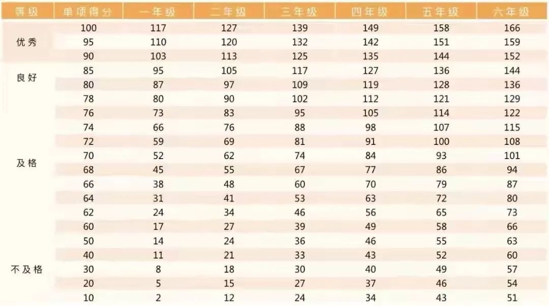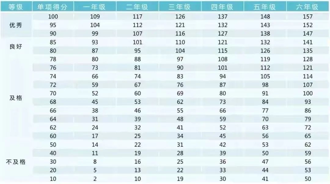 在《国家学生体质健康标准》中,跳绳被列为小学一到六年级评价指标测试项目。大家可以先参照《小学一分钟跳绳评分标准》,看下家里的小朋友是否达标