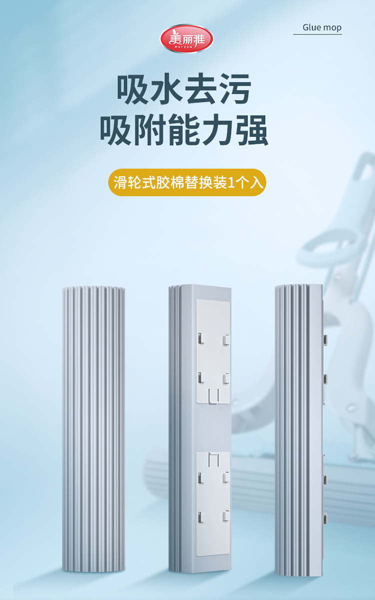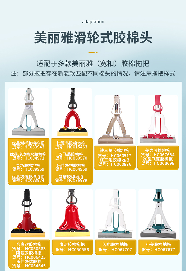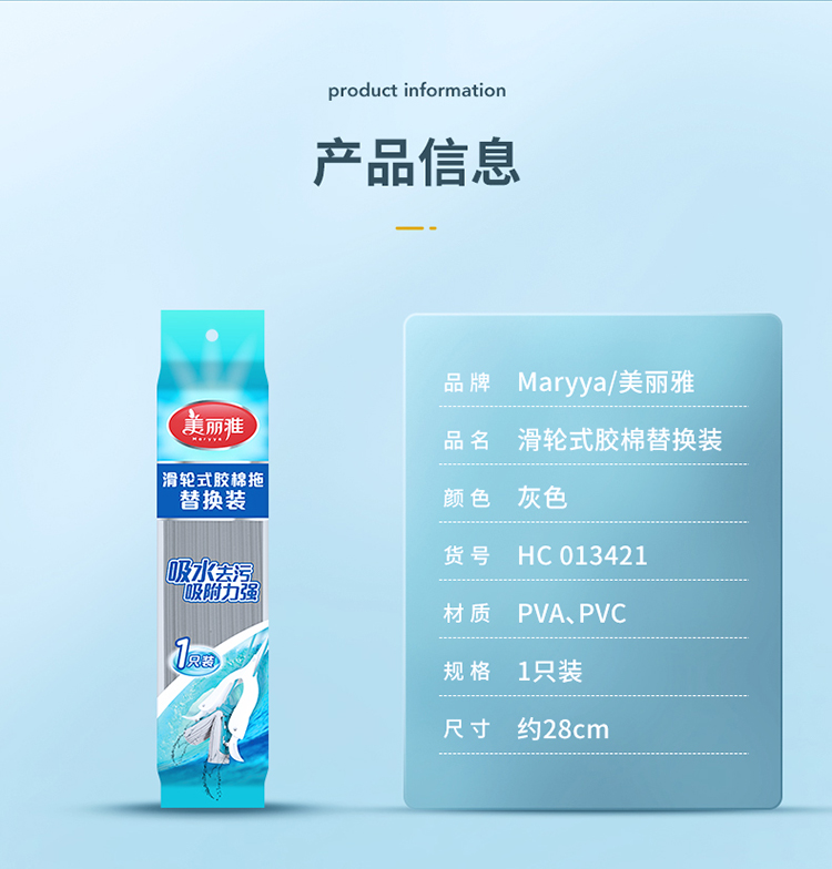 【滑轮式胶棉拖替换装】宽扣-美丽雅拖把头配件滑轮式胶棉海绵拖头28CM