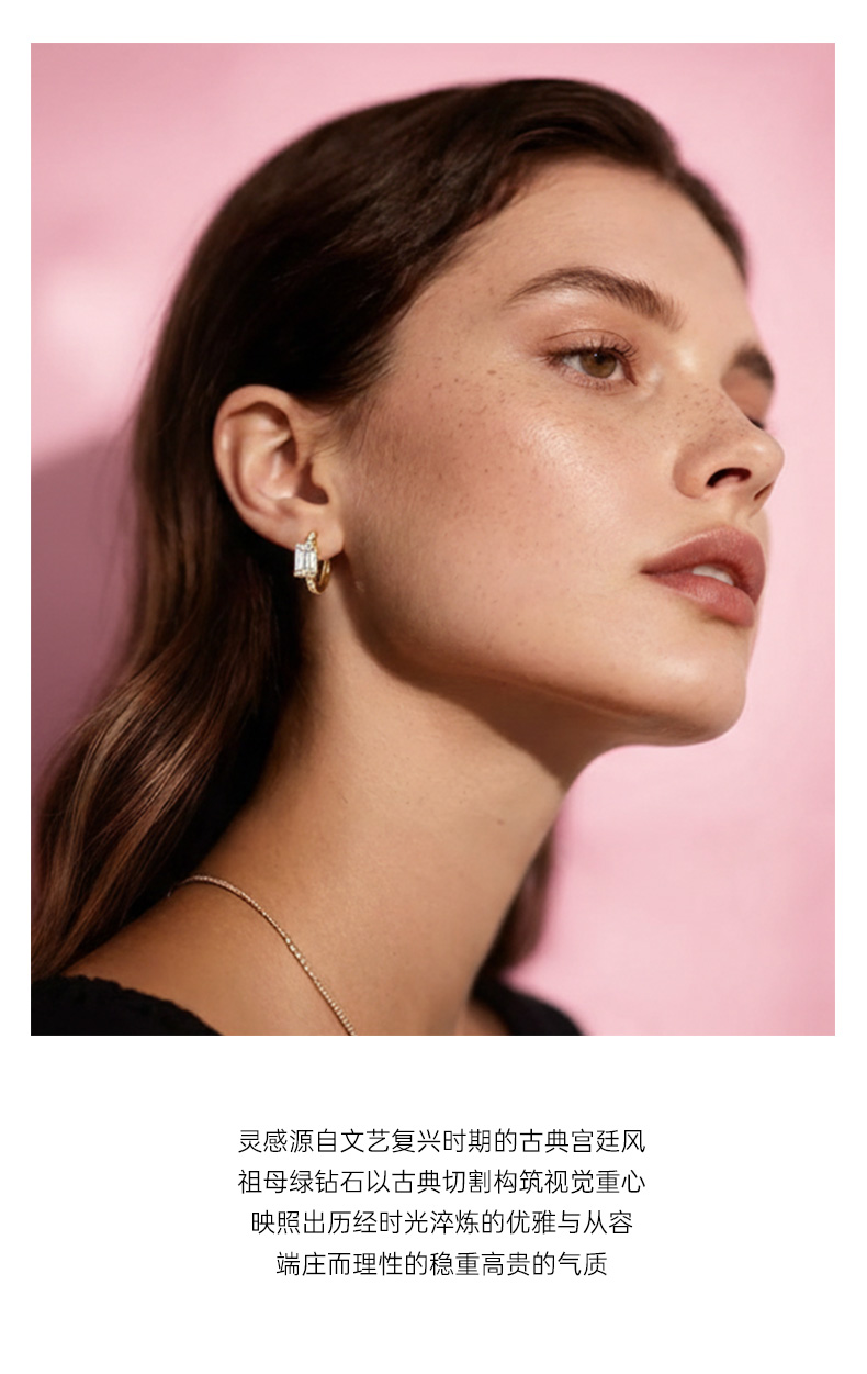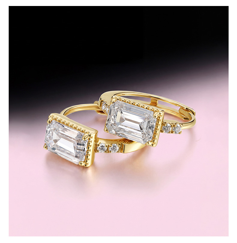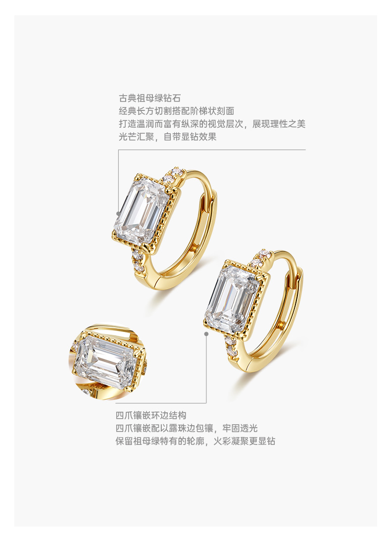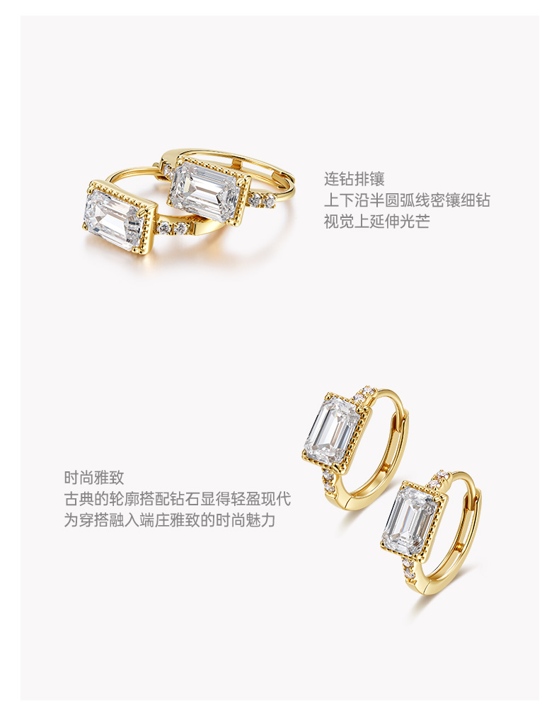 ShiningHouse[培育] 18k金钻石耳饰 祖母绿形1克拉钻人工真钻人造钻石K金耳圈排钻耳环时尚钻石耳饰耳环悦己送礼臻选【此商品不支持7天无理由退货退款】预计3日发货