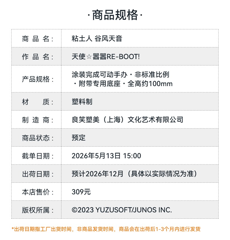 【GSC预售定金】粘土人 谷风天音 附官方限定特典 天使☆嚣嚣RE-BOOT!