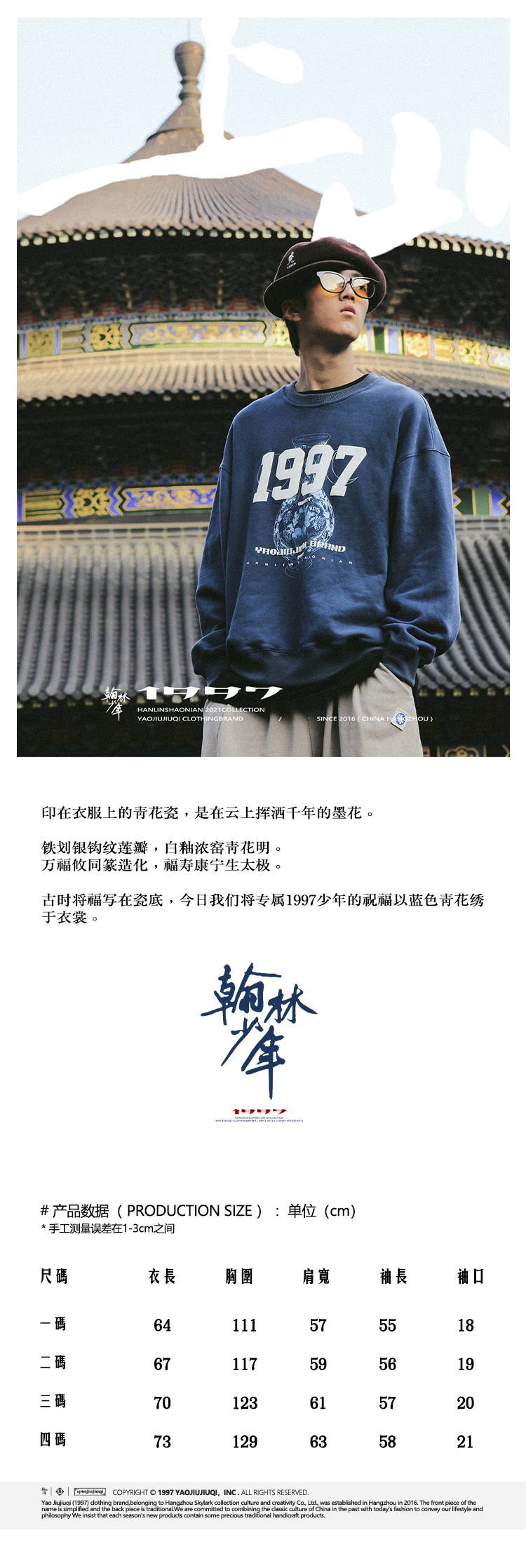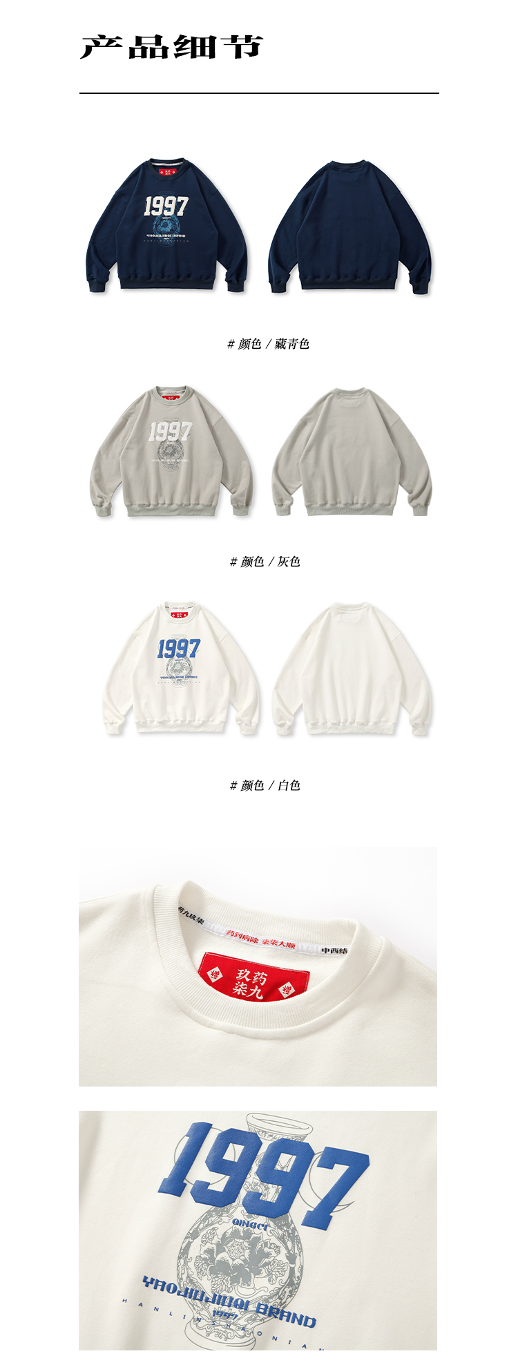 药九玖柒 1997邮政局/中国风青花瓷卫衣/JQ21090090