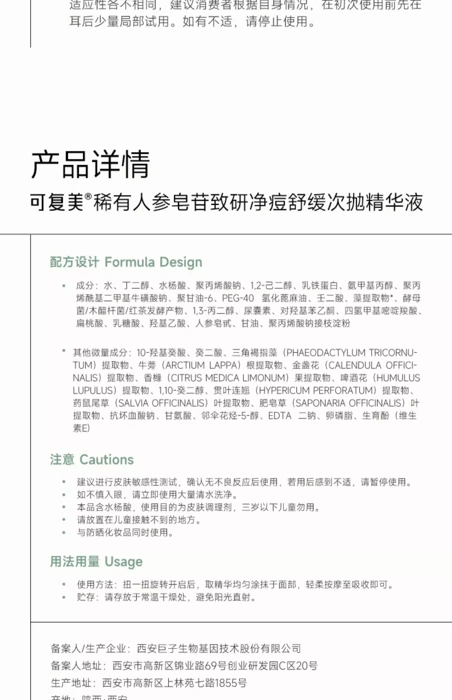 可复美秩序次抛稀有人参皂苷致研净痘舒缓控油次抛精华液