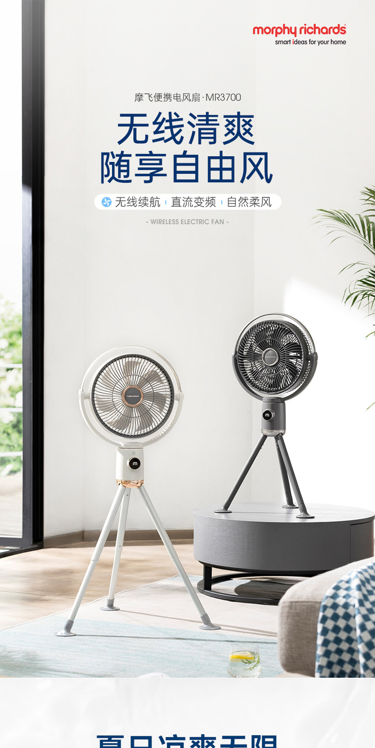 摩飞电风扇充电无线便携式户外露营家用空气循环扇遥控落地扇电扇