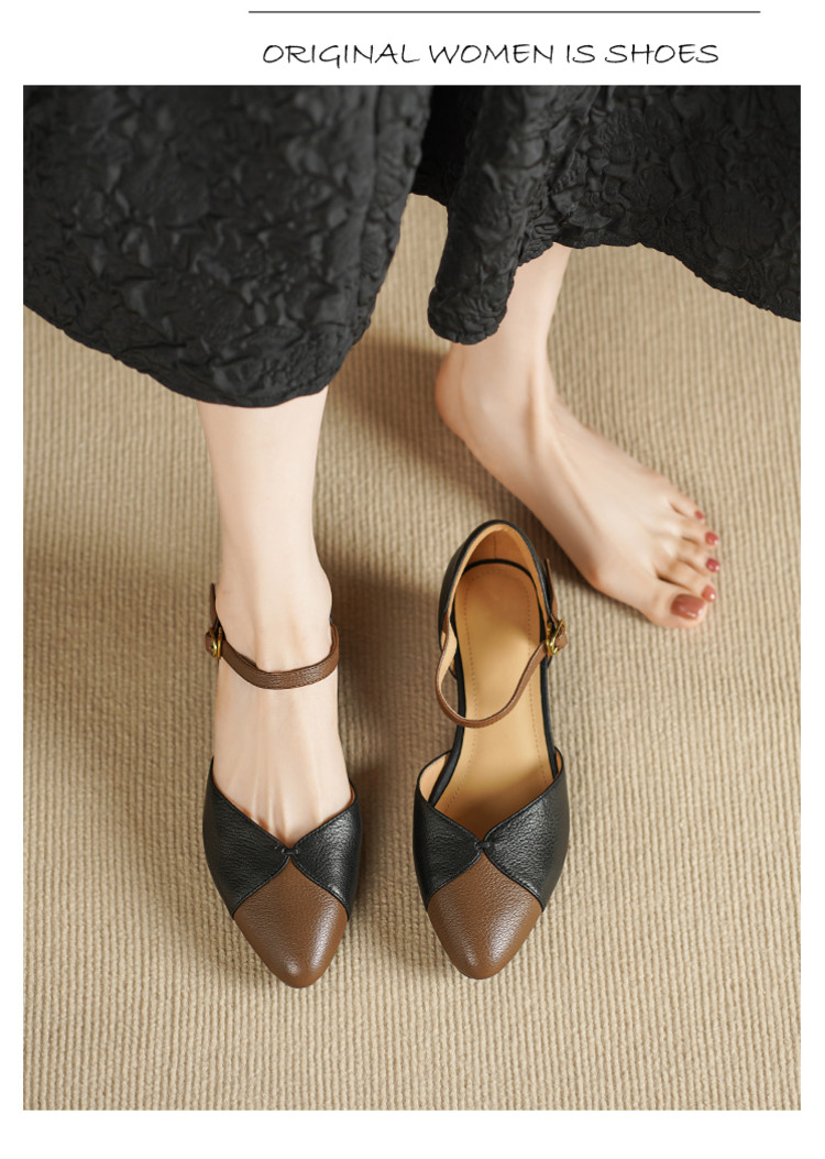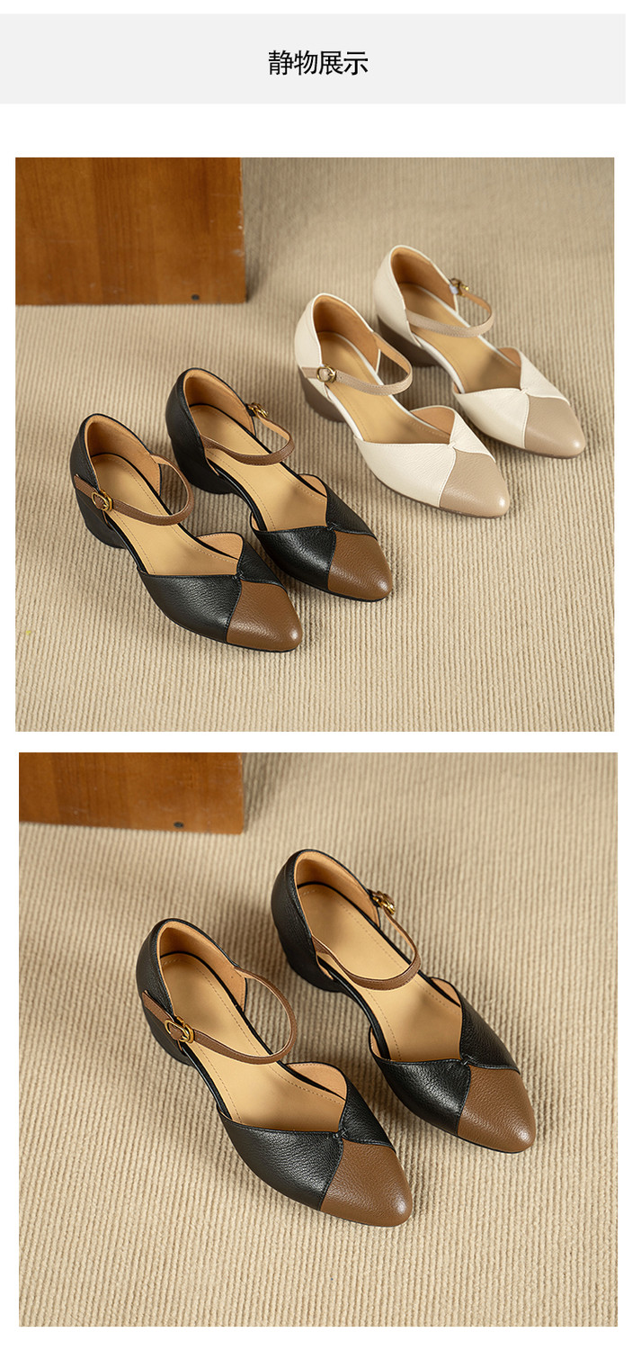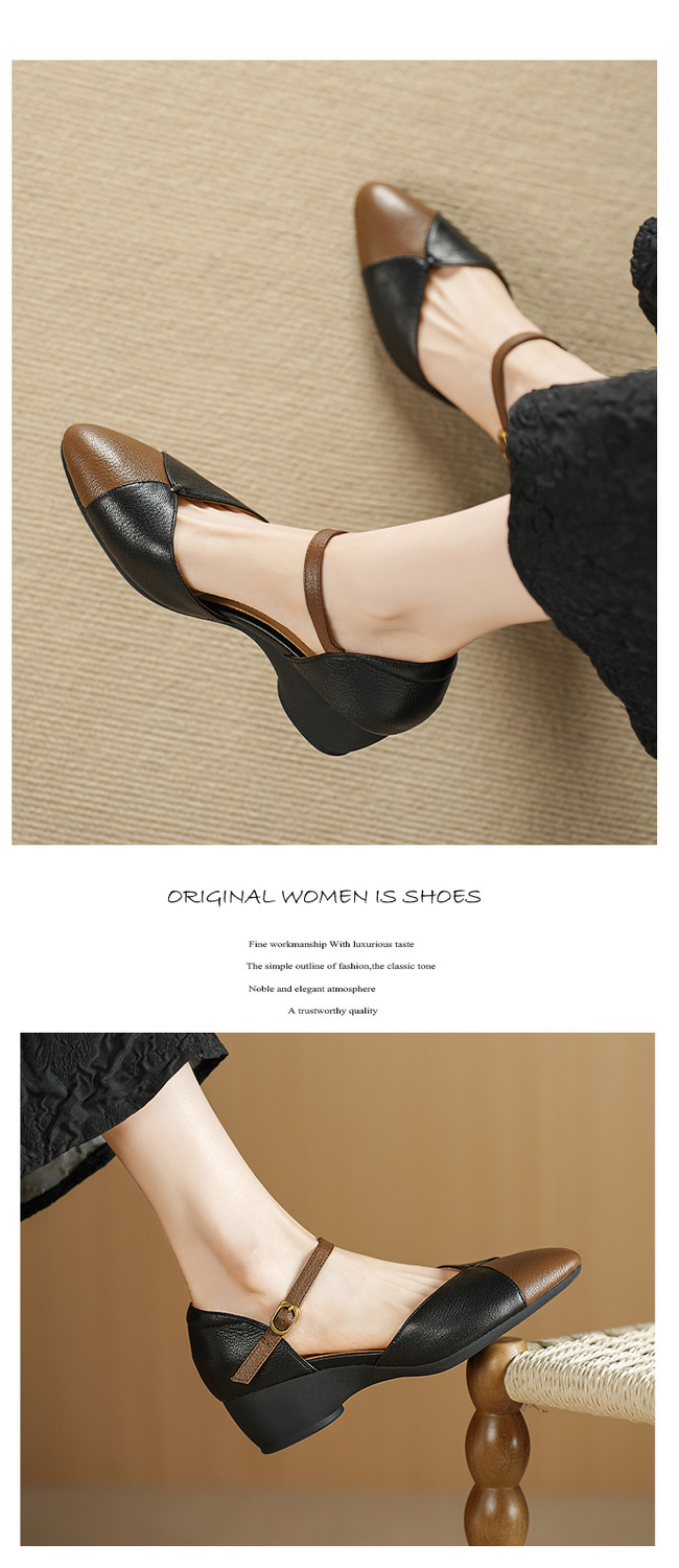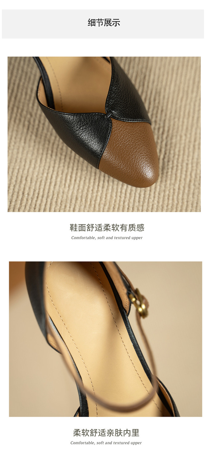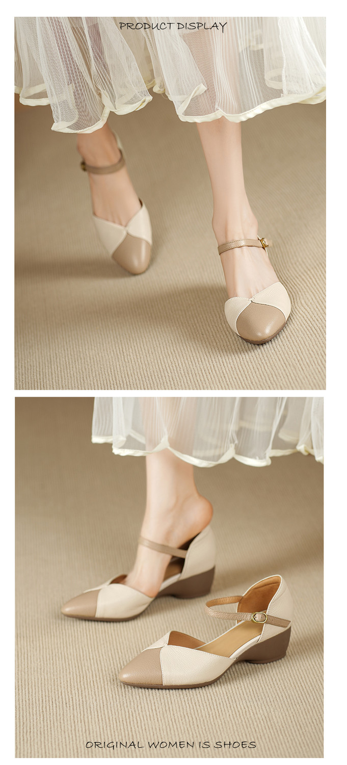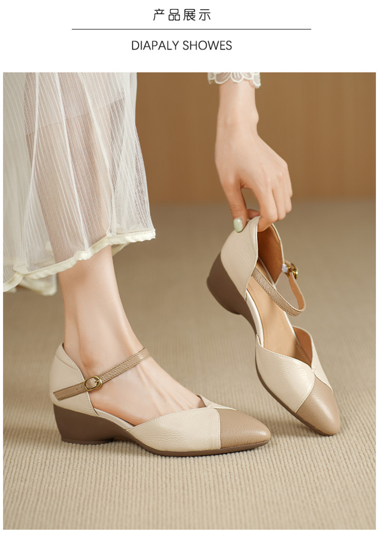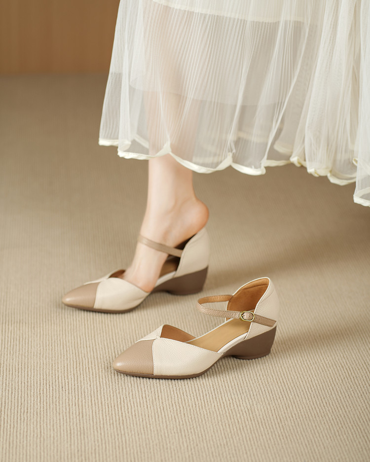 【预售5天】巨好搭~复古软羊皮坡跟包头凉鞋女夏季新款尖头拼色中空单鞋DTN&527-6