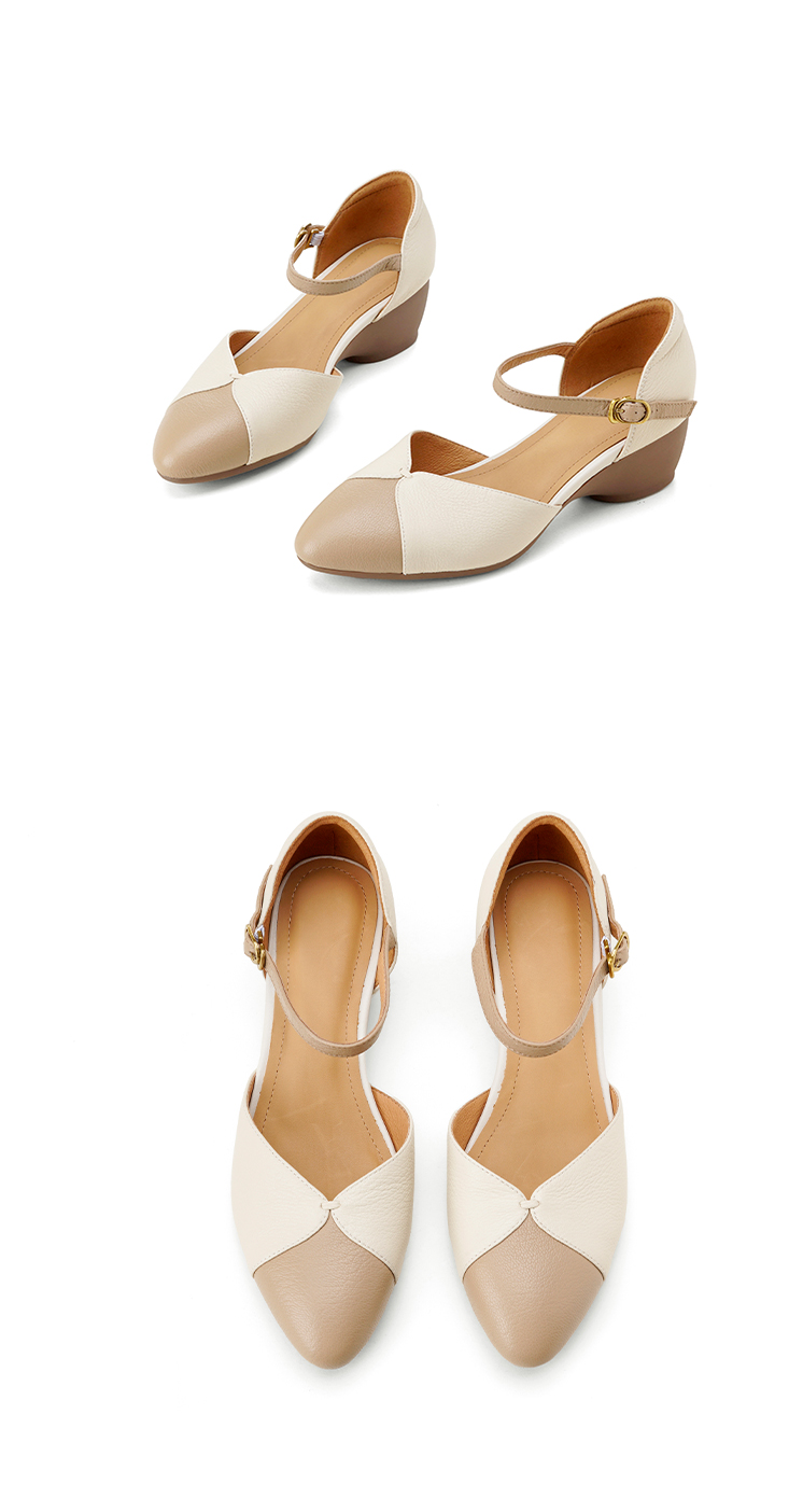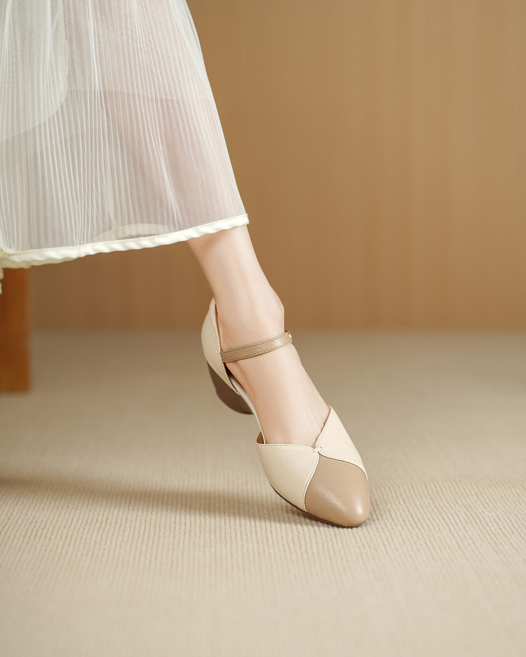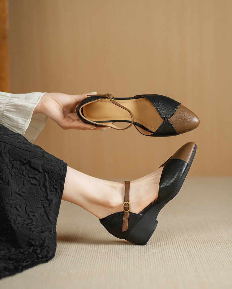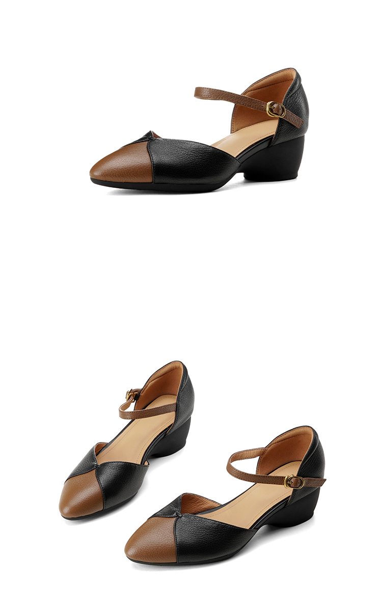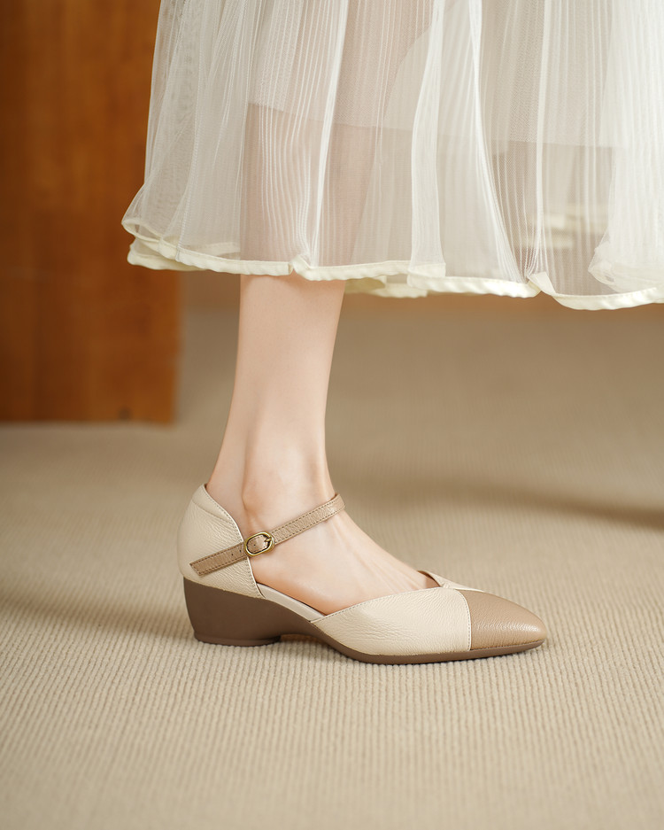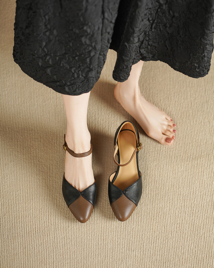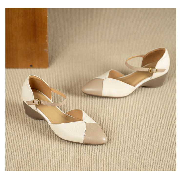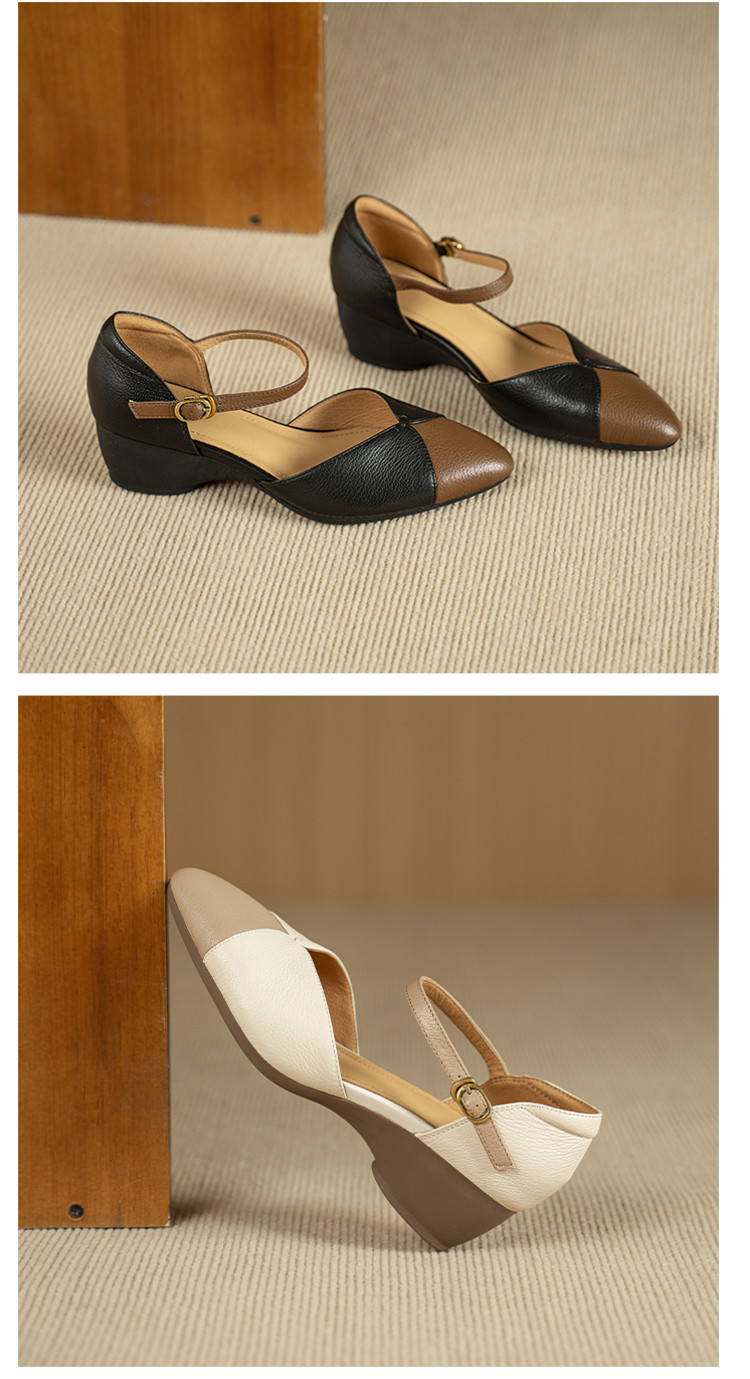 【预售5天】巨好搭~复古软羊皮坡跟包头凉鞋女夏季新款尖头拼色中空单鞋DTN&527-6