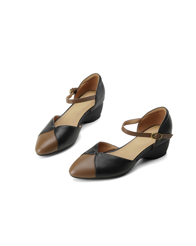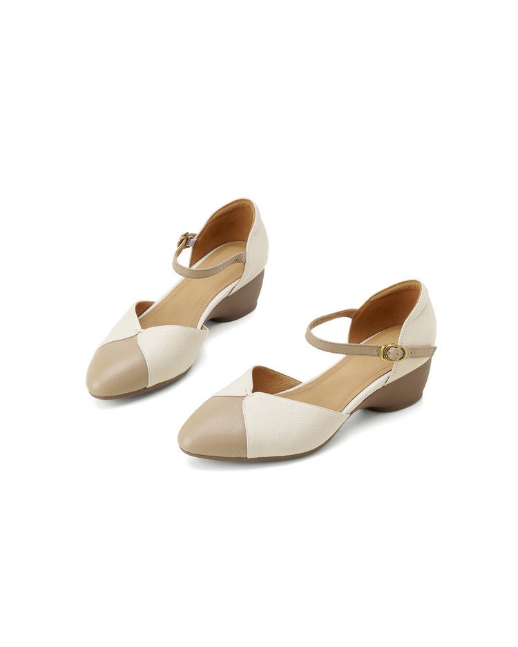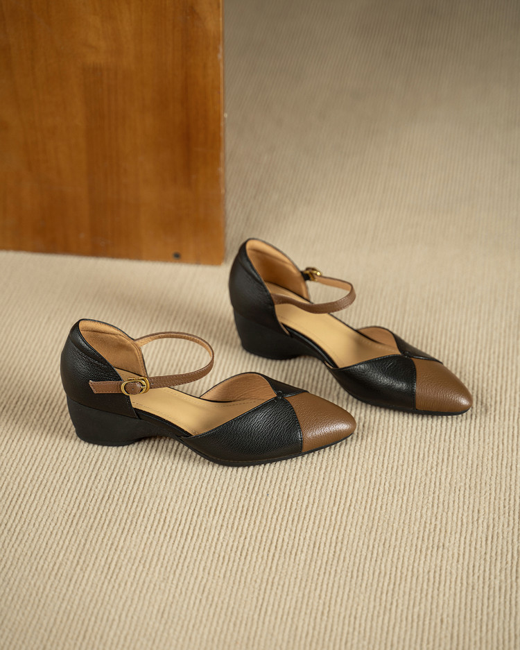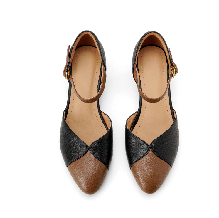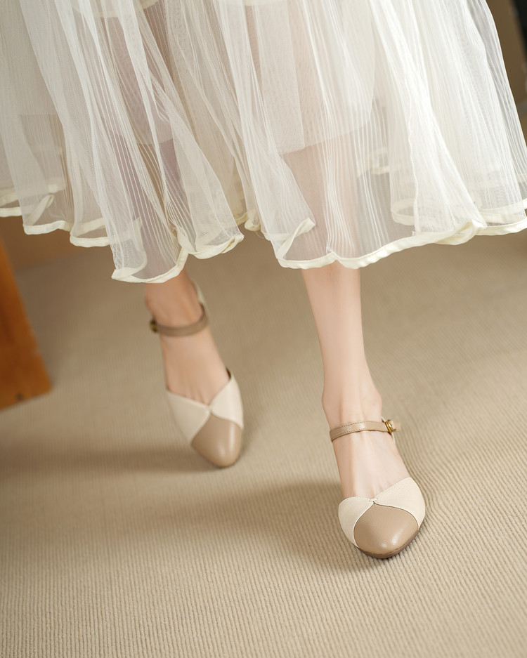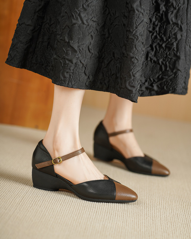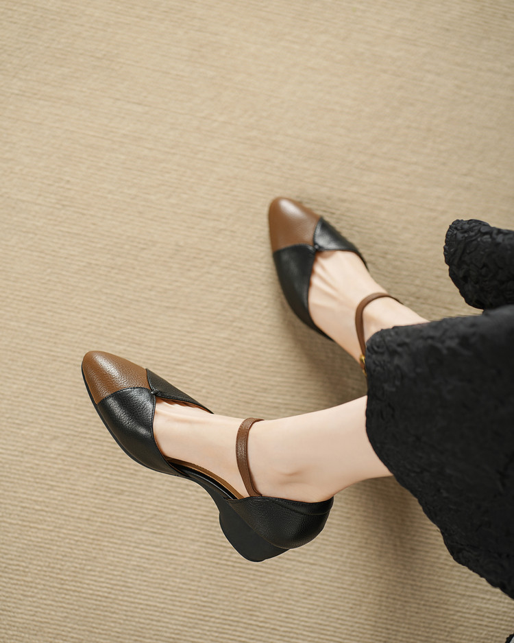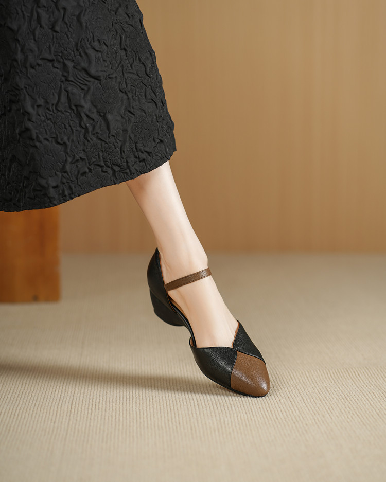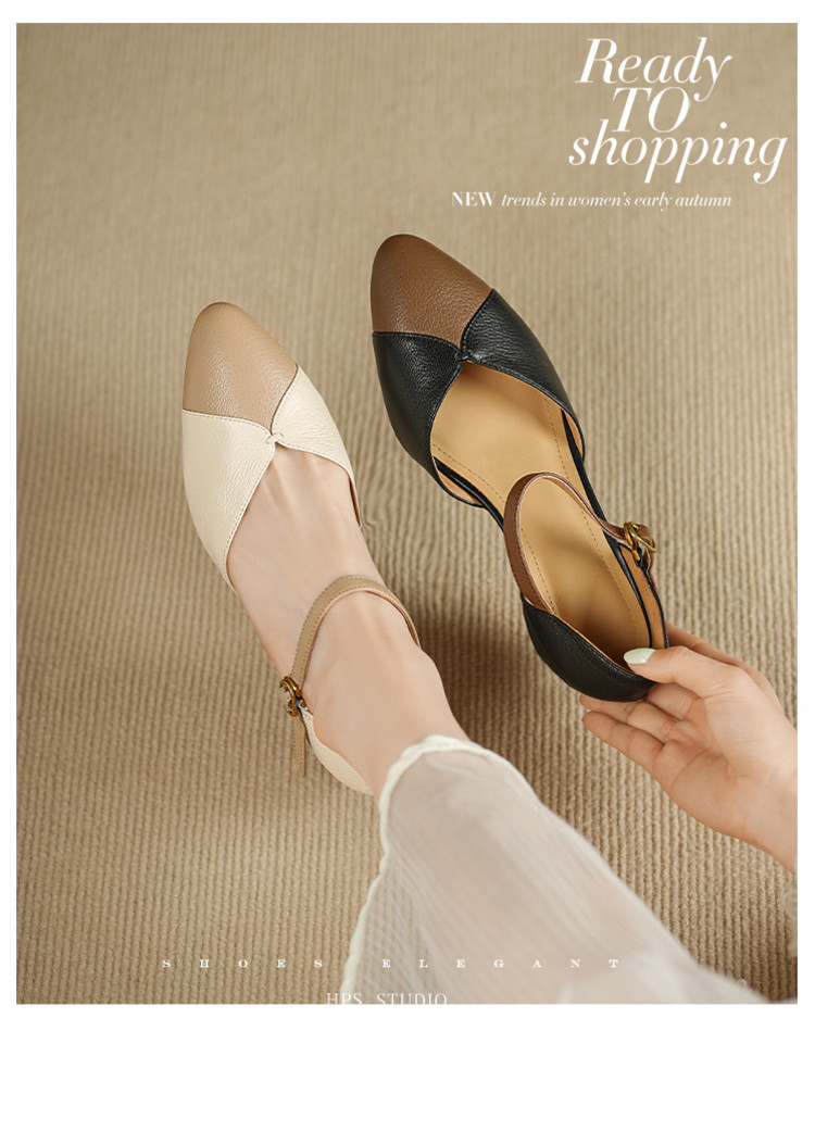 【预售5天】巨好搭~复古软羊皮坡跟包头凉鞋女夏季新款尖头拼色中空单鞋DTN&527-6