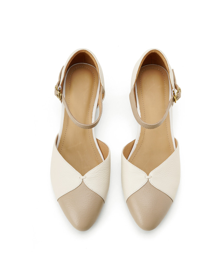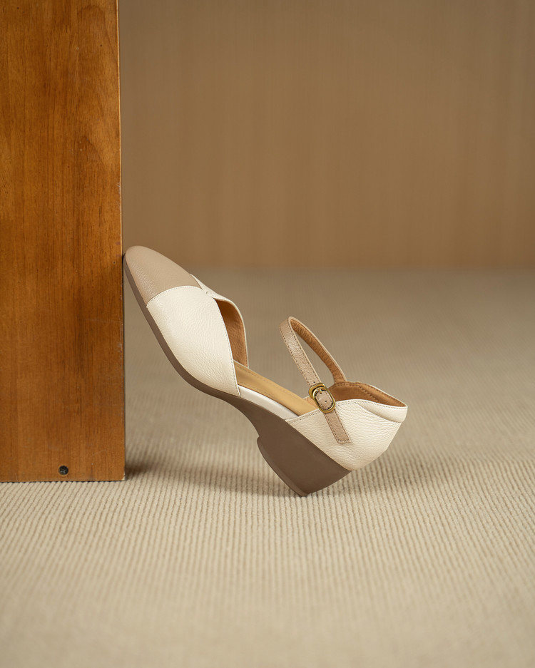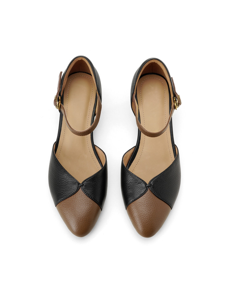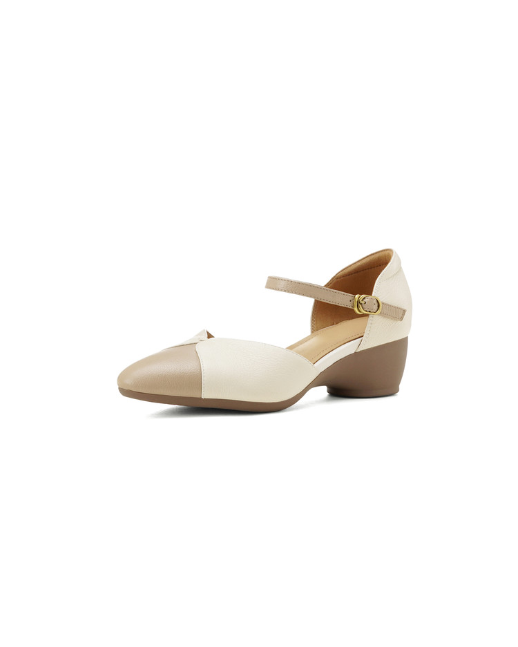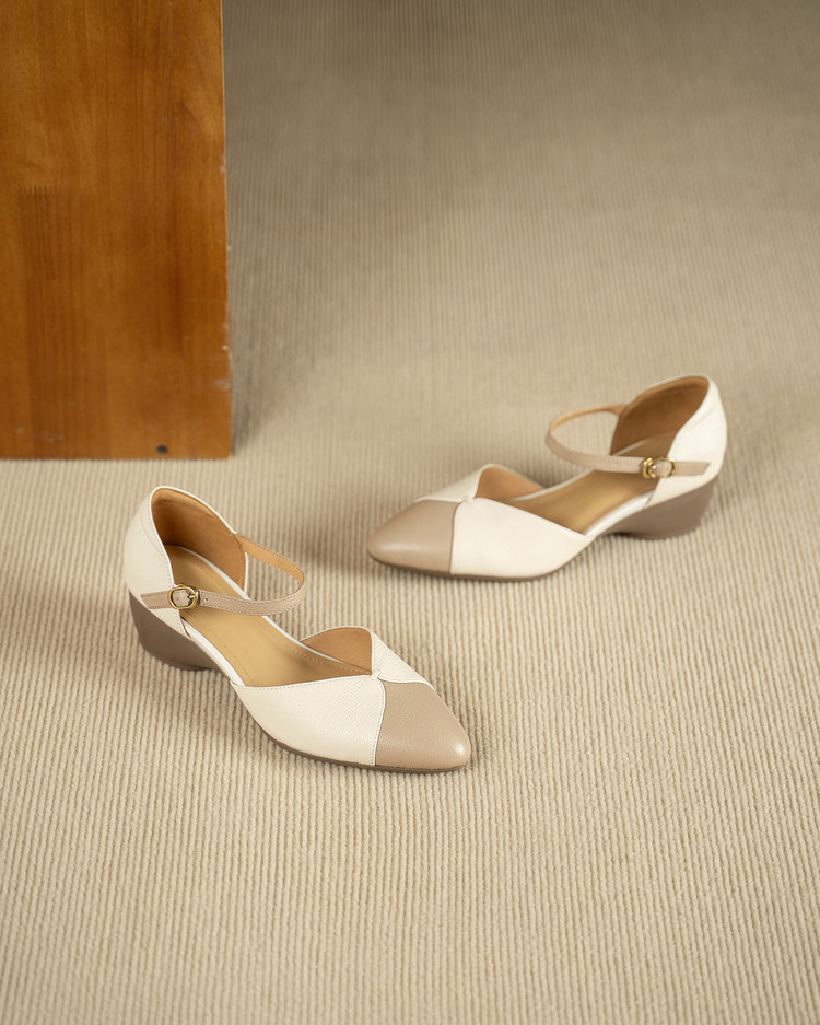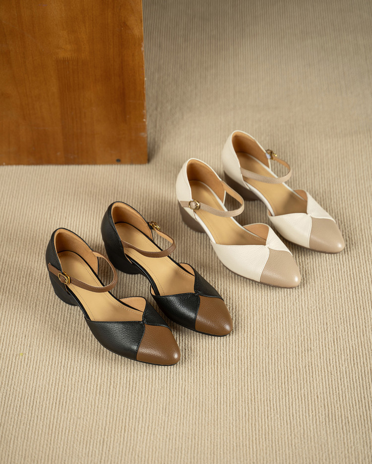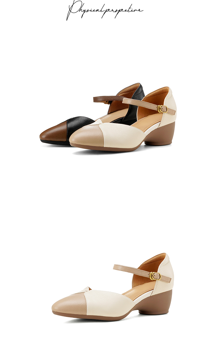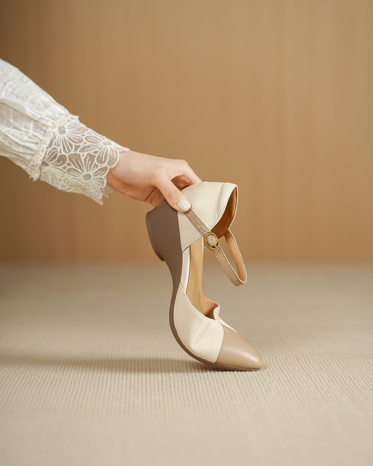 【预售5天】巨好搭~复古软羊皮坡跟包头凉鞋女夏季新款尖头拼色中空单鞋DTN&527-6